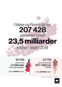 Møre og Romsdal: Skatteoppgjer for 23,5 milliardar kroner i 2018