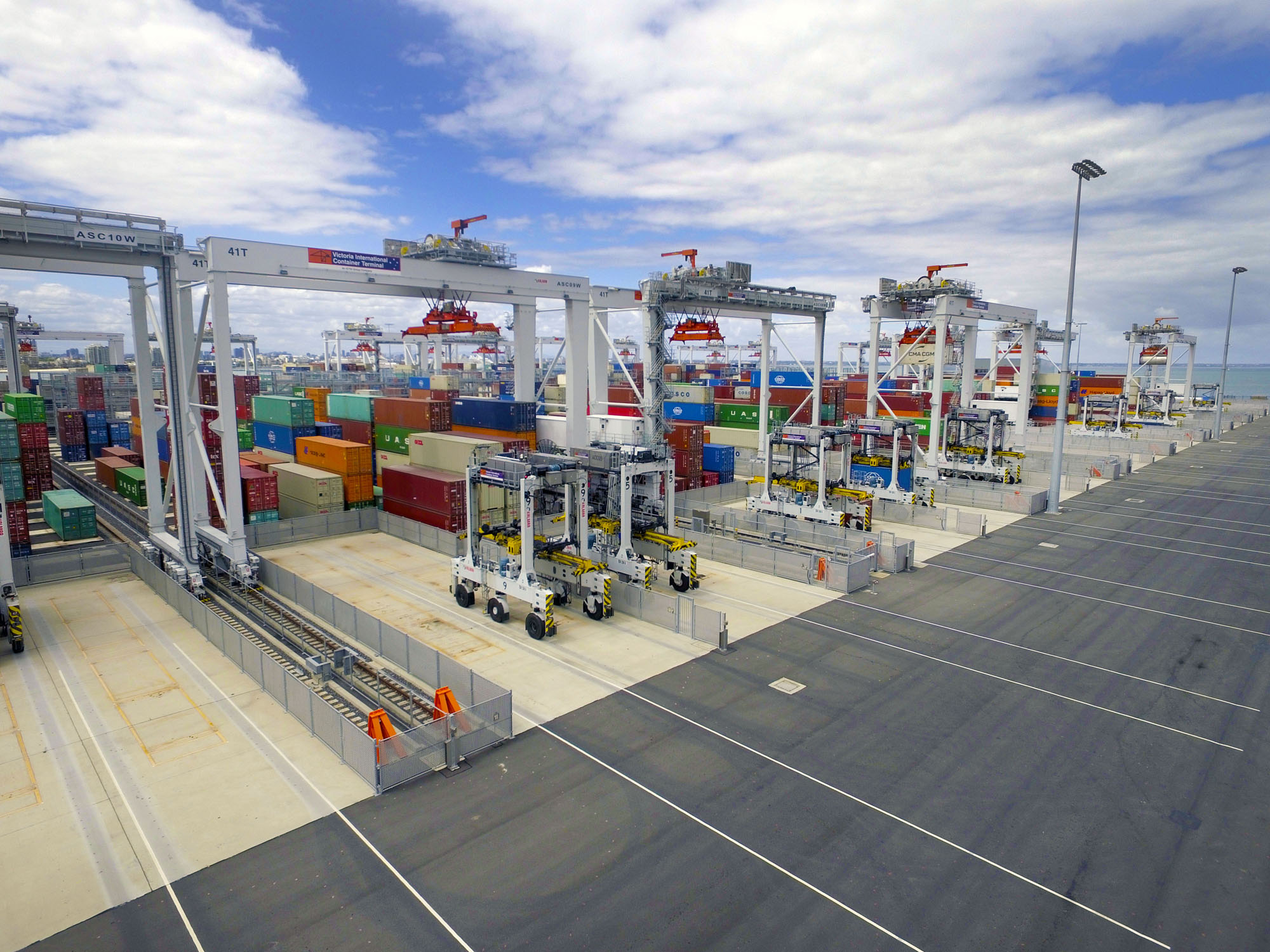 VICT is Australia’s first fully automated container terminal and is owned by International Container Terminal Services, Inc. The 35-hectare terminal has a design capacity of over a million TEU and is the only terminal in Melbourne capable of handling the largest boxships.