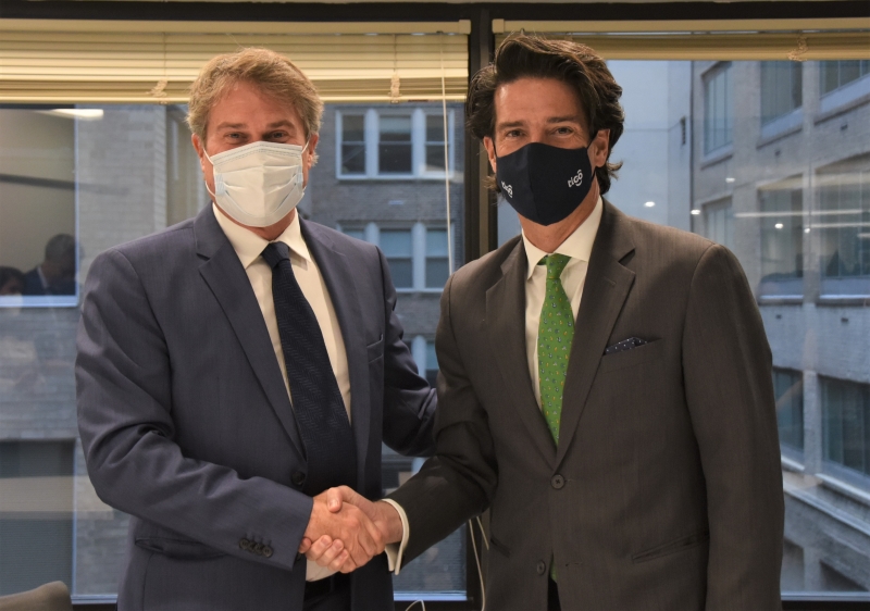 To the left, James P. Scriven, IDB Invest CEO and to the right, Mauricio Ramos, Millicom CEO