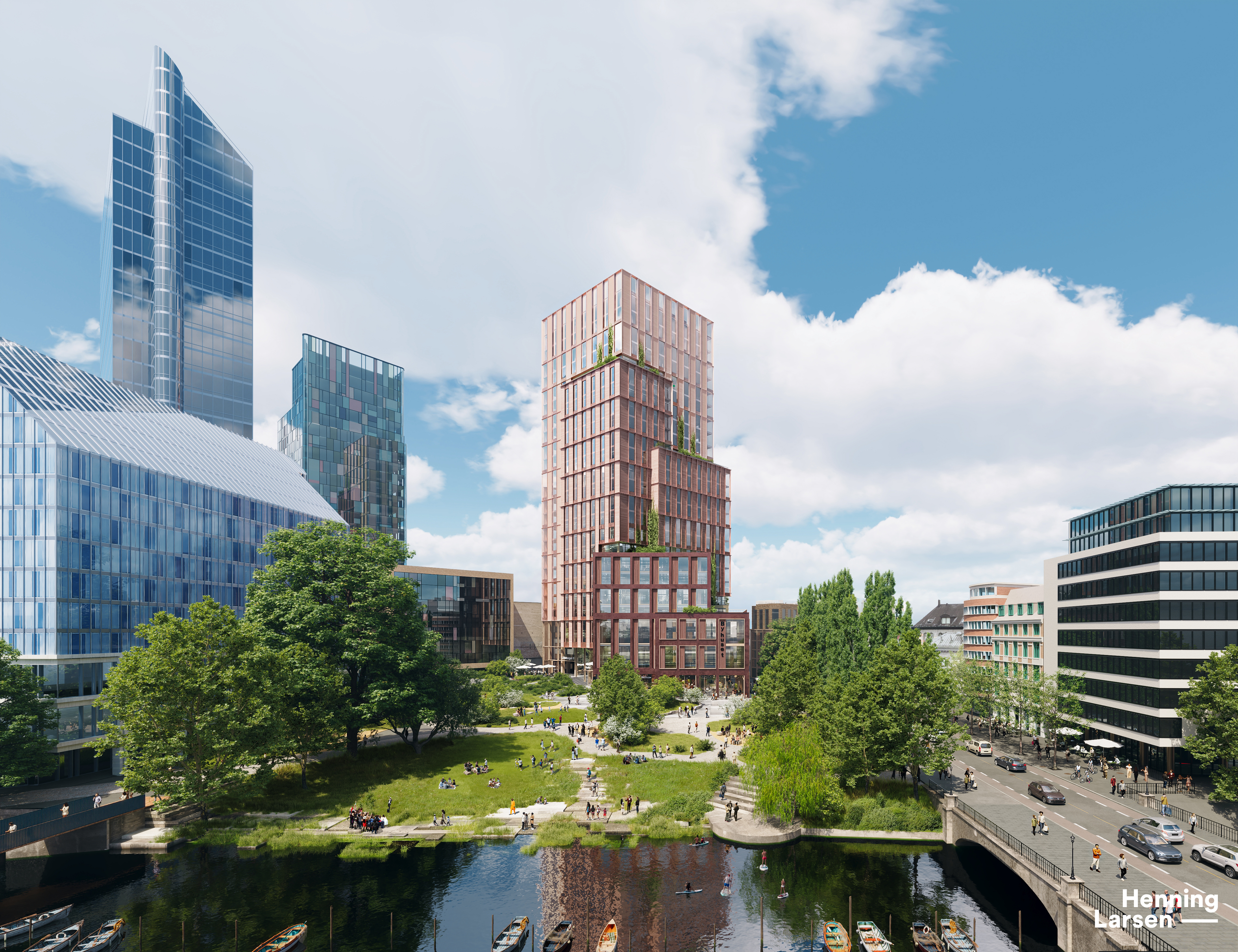 – Bygget ivaretar overgangen mellom høyhusene, Oslo S og den historiske bystrukturens skala og materialitet med et tydelig arkitektonisk grep som tar hensyn til omgivelsene. Det videreutviklede forslaget består av ulike høyder, og bidrar til en naturlig nedtrapping mot Vaterlandsparken og den historiske bystrukturen mot nord. Bygningen er planlagt til 102 meter, uttaler Kasper Kyndesen, Design Director i Henning Larsen.