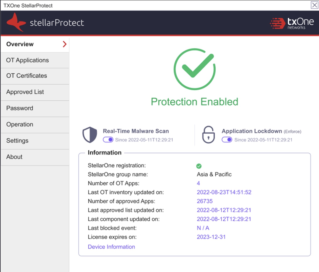 Stellar consists of an agent that works with an organization’s OT devices and a centralized management console that streamlines management and policy control. A comprehensive OT-context-focused database, which TXOne Networks maintains in partnership with leading device original equipment manufacturers (OEMs), informs the accurate identification and preservation of more than 8,000 OT/industrial control system (ICS) applications, certificates and devices.
