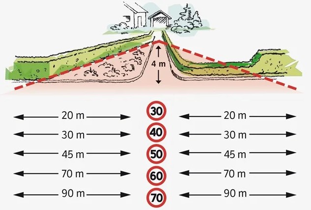 Ved 40 km/t skal du kunne se veien 30 meter i begge retninger.