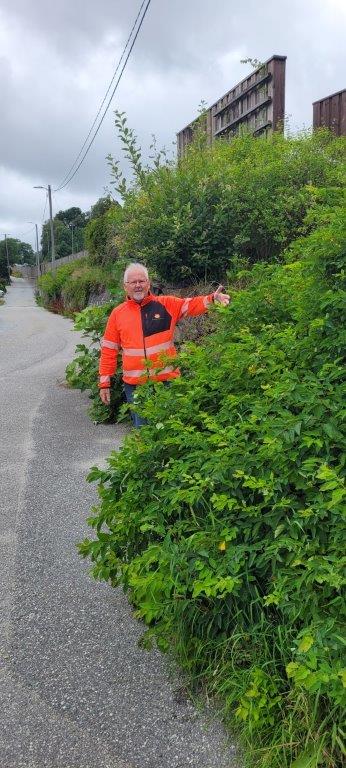 Hvis avkjørselen din munner ut i veien, må hekk og gjerde ikke være høyere enn 0,5 meter over gateplan. Du kan også flytte hekk og gjerde utenfor frisiktsonen. Frisiktsonen er merket med rødstiplet strek.