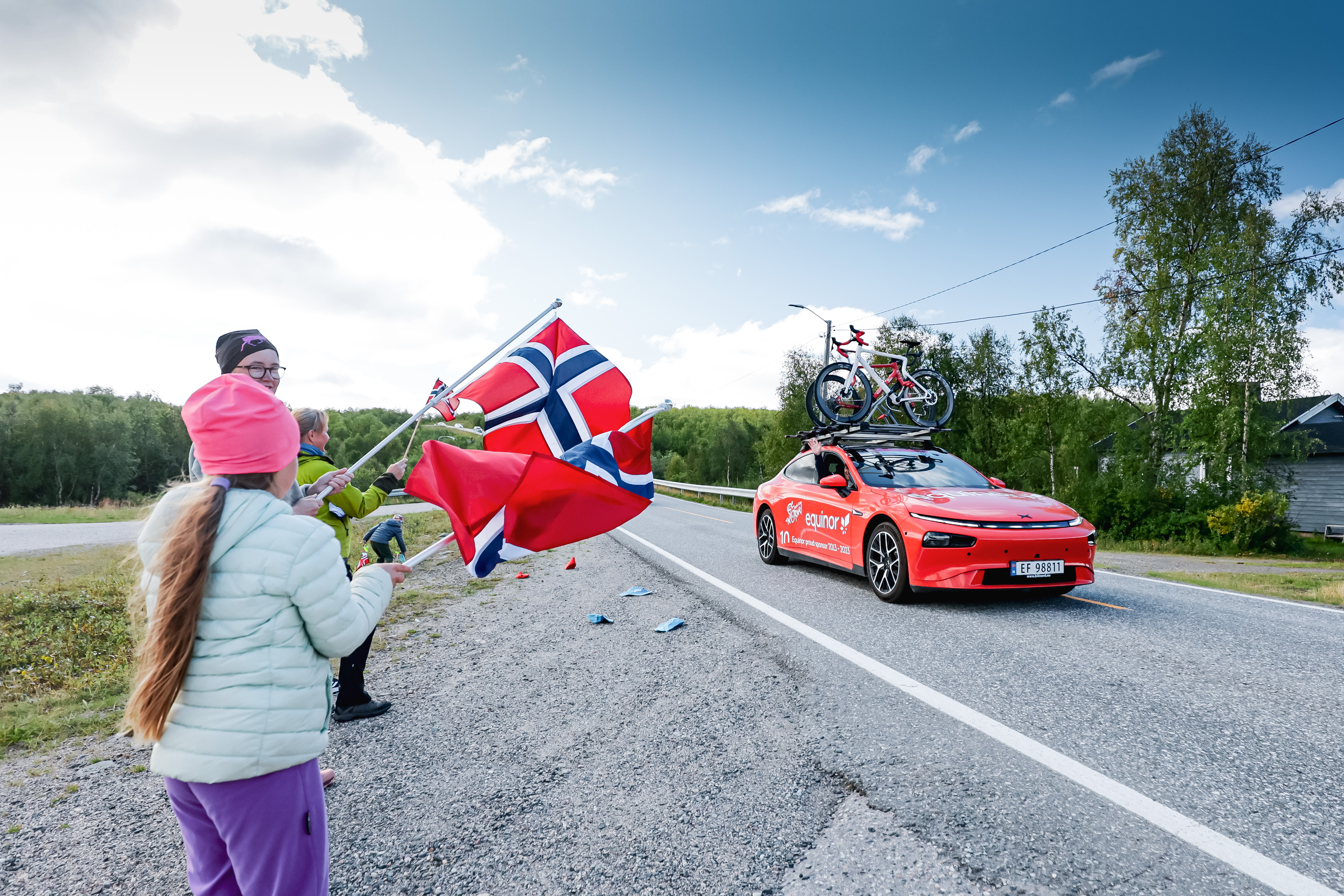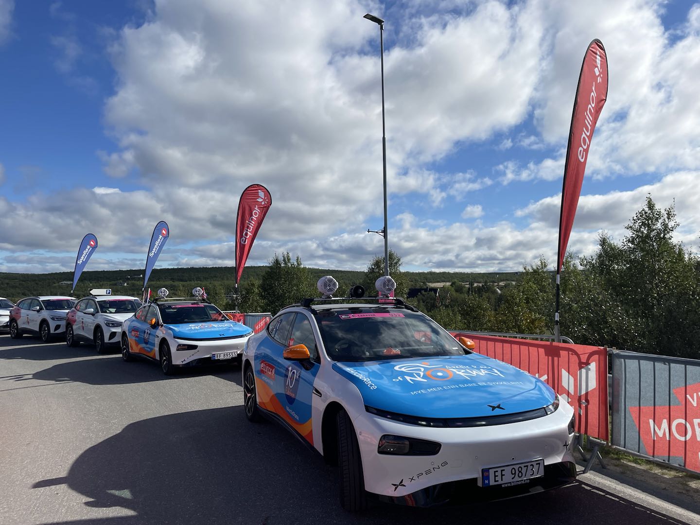 – Xpeng har klart å levere 129 biler til Alta på rekordtid. Alle disse bilene er foliert, ladet og klare for rittet som startet i går. Sammen med Kempower stiller de med en mobil ladepark som gjør det mulig for oss å ta et viktig skritt mot klimanøytralitet. Å arrangere verdens første sykkelritt med helelektriske følgebiler hadde ikke vært mulig uten dem, konkluderer han.