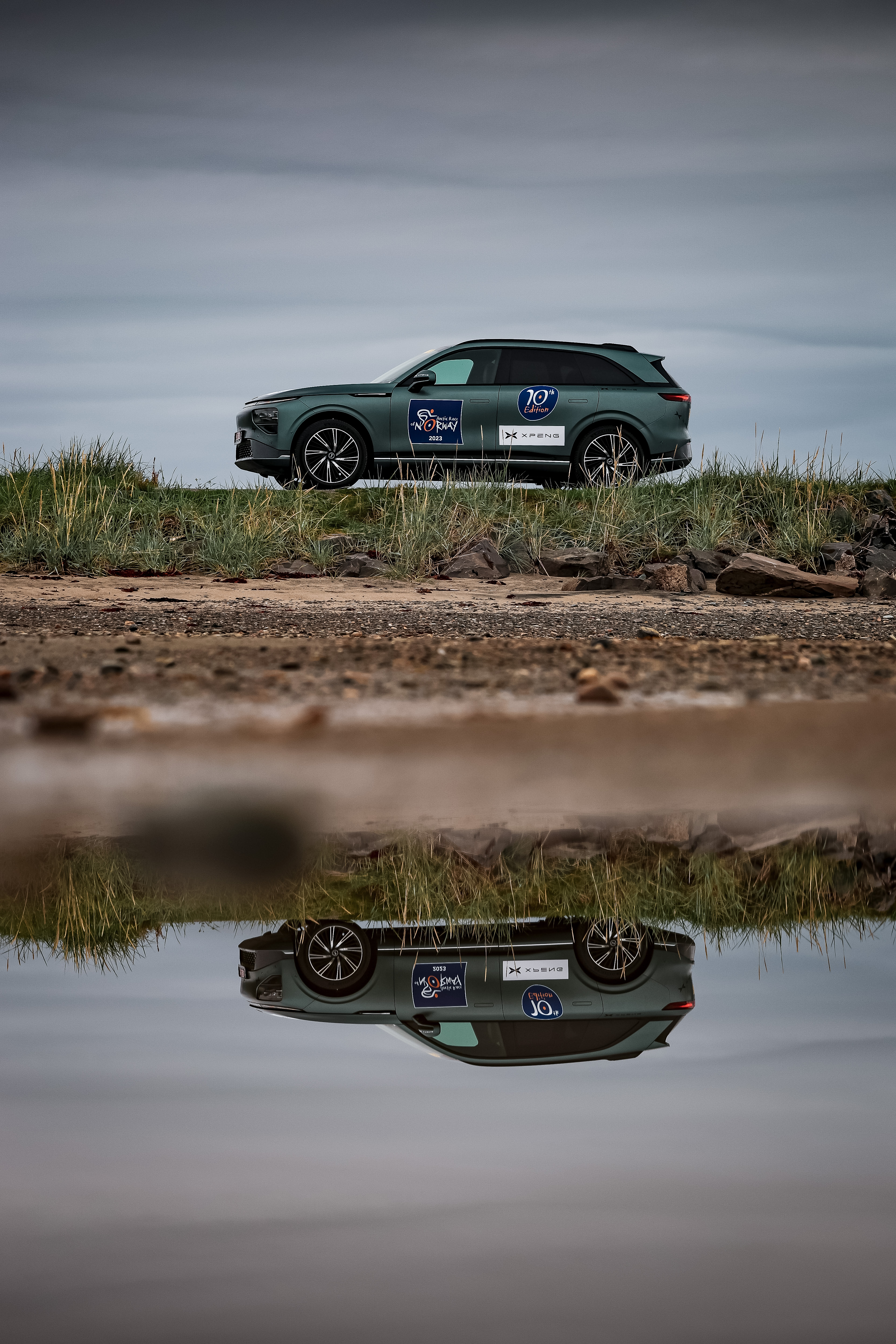 Det er elbil- og teknologiprodusenten Xpeng som gjør det mulig å arrangere årets ritt med kun elektriske følgebiler. De har blitt en offisiell samarbeidspartner med Arctic Race of Norway, nettopp for å bevise at det er mulig å arrangere store sykkelritt med kun elektriske følgebiler.