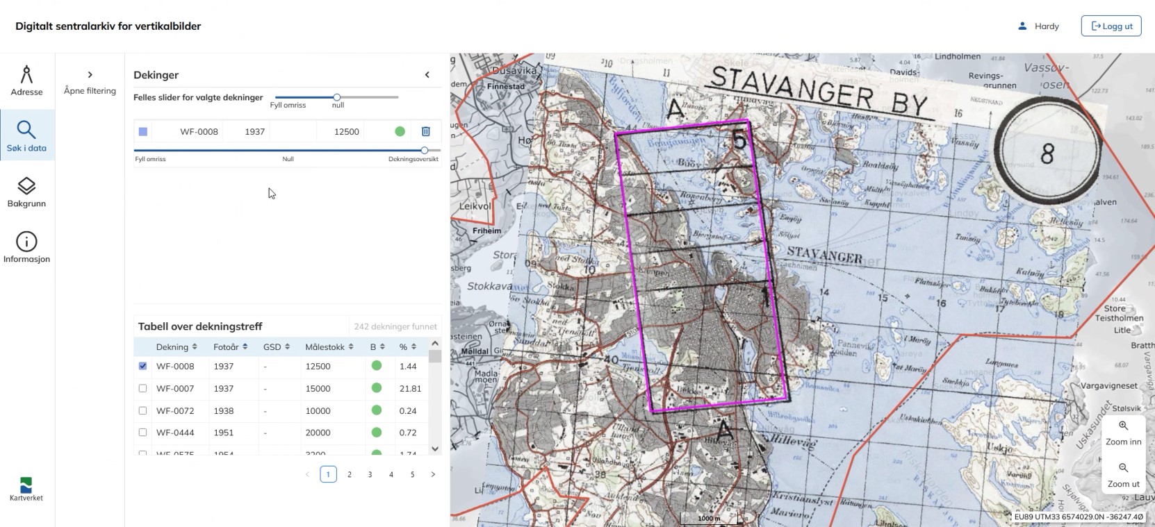 – Men, no kan kommunar og andre partar i Noreg digitalt sjølv gjere geografiske søk i sentralarkivet for flyfoto. Dette gir dei ei innsikt og oversikt med ein einaste gong over kva slags bilde som finst og om bilda er digitalisert.