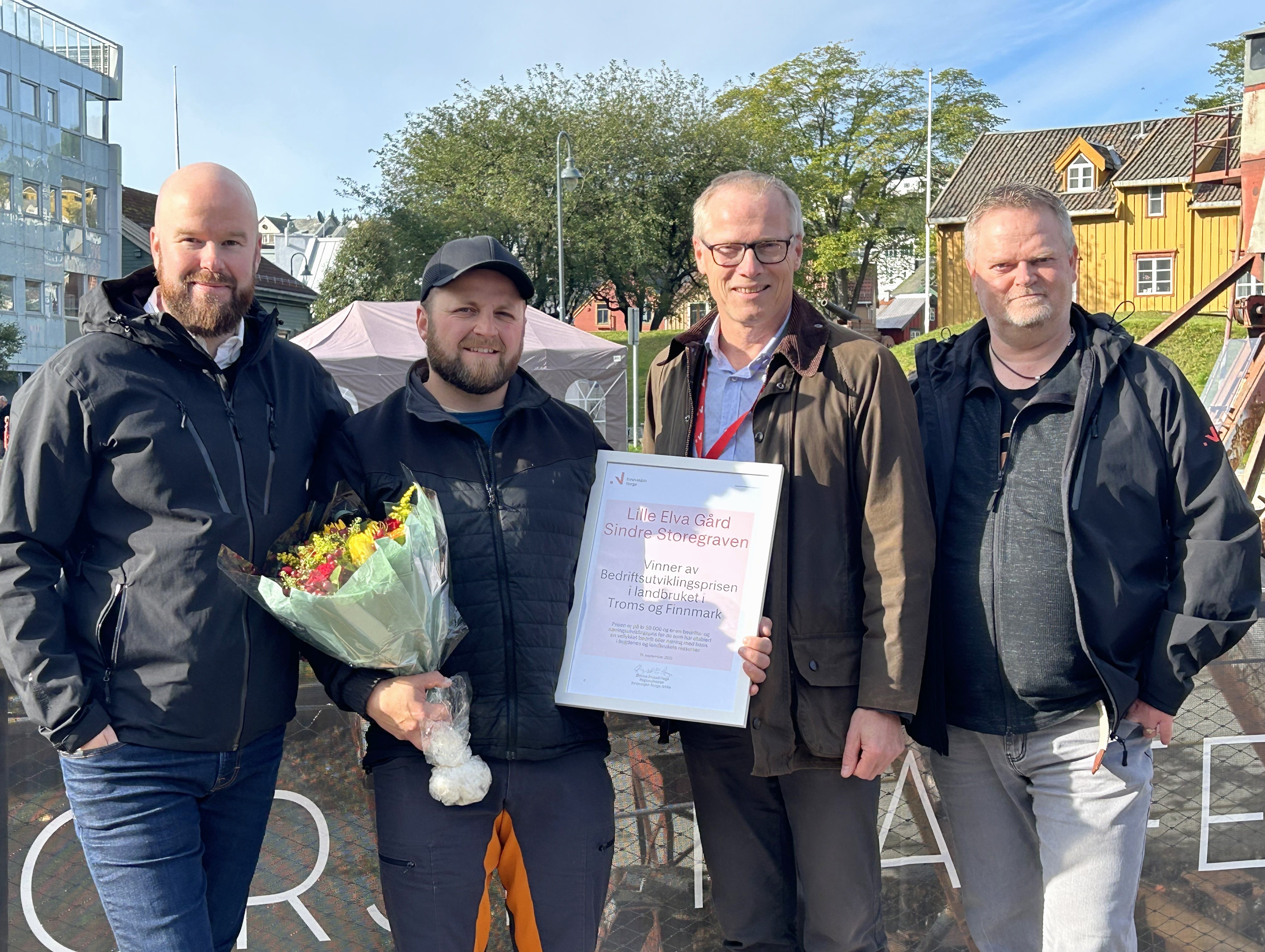 - Lilleelva gård har tatt utgangspunkt i gårdens kjernevirksomhet og sett på hvordan bedriften kan få et verdiløft med de rette investeringene. De har etablert et eget varemerke og med aktiv profilering så bygger de omdømme for både tradisjonelt landbruk og tilleggsnæring. Bedriften har et uttalt fokus på sirkulær økonomi der restprodukter fra andre går inn i produksjonen og holder kostnader nede. Innsatsen er imponerende og de er en stor inspirasjon for det fremtidige landbruket i regionen, sier regiondirektør Øyvind Enstad Haga, Innovasjon Norge Arktis.