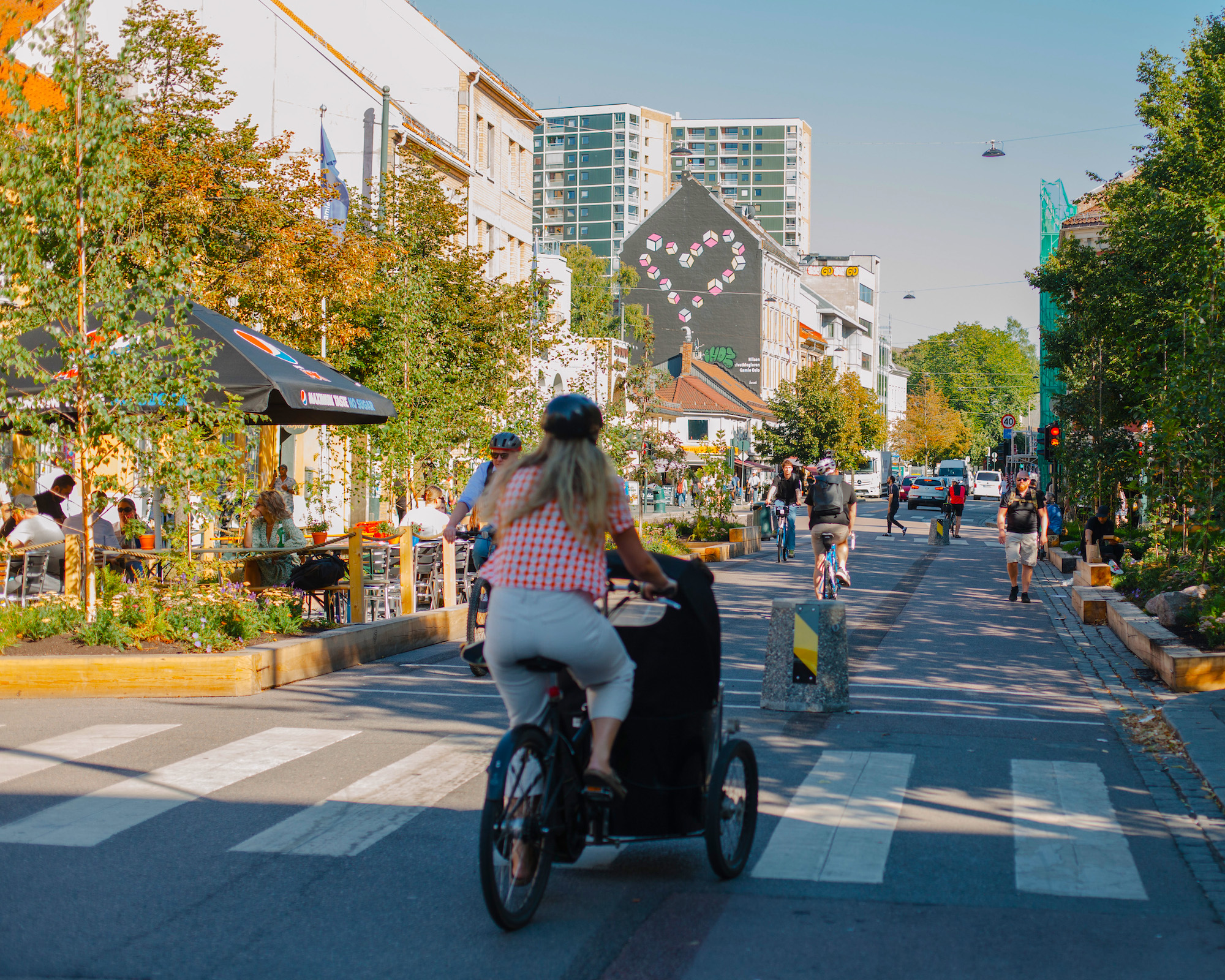 - Stenging av sterkt trafikkert gate for midlertidig gjennomføring av prosjekt for økt byliv. Transformering av en sterkt trafikkert gate til et byrom for mennesker er en stor endring, og det er en glede å se hvor høyt det blir verdsatt av brukerne.