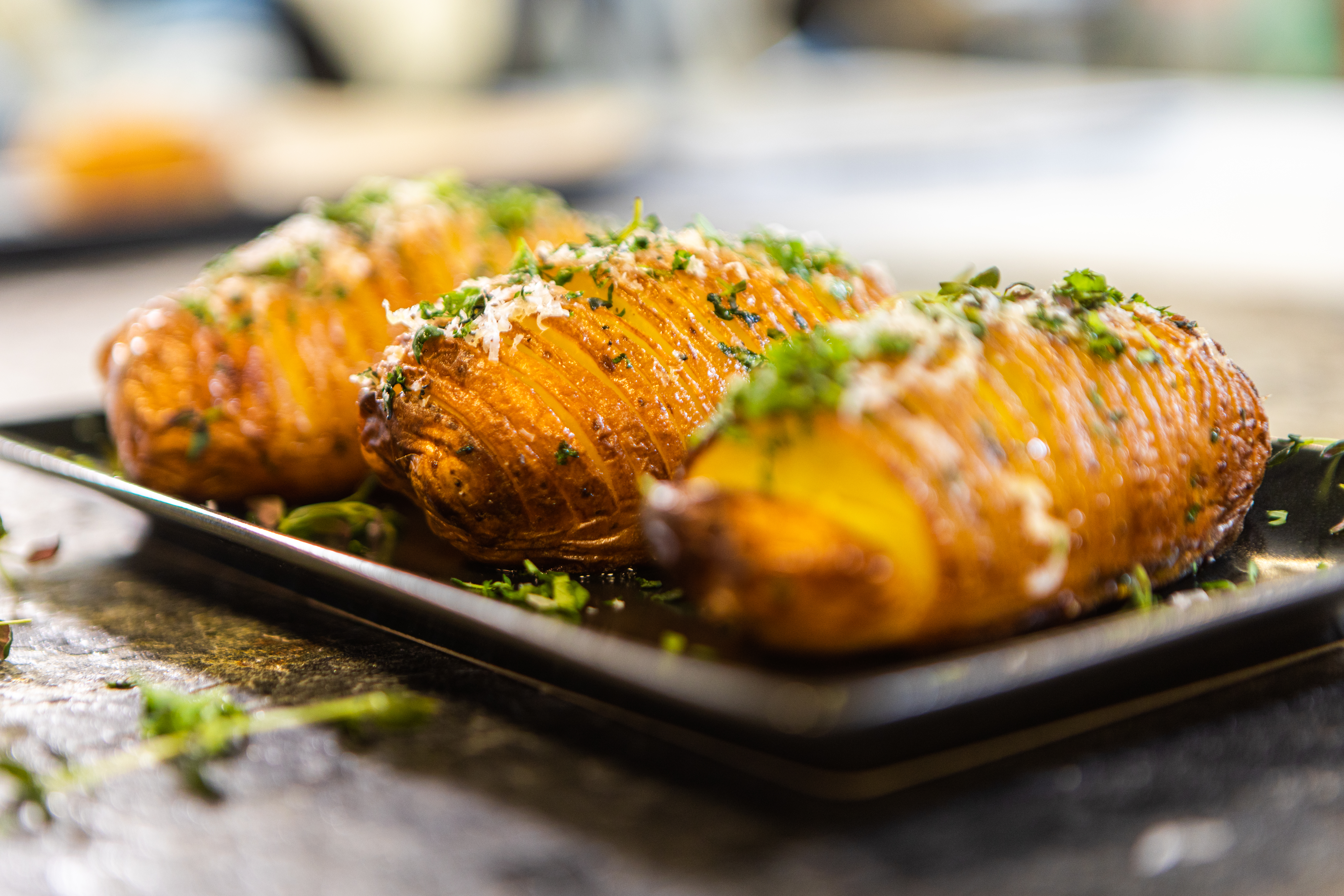 Det er ikke noe som er kjedelig i disse sprø smakfulle hasselbackpotetene, eller med ildfulle poteter- også kalt patatas bravas.