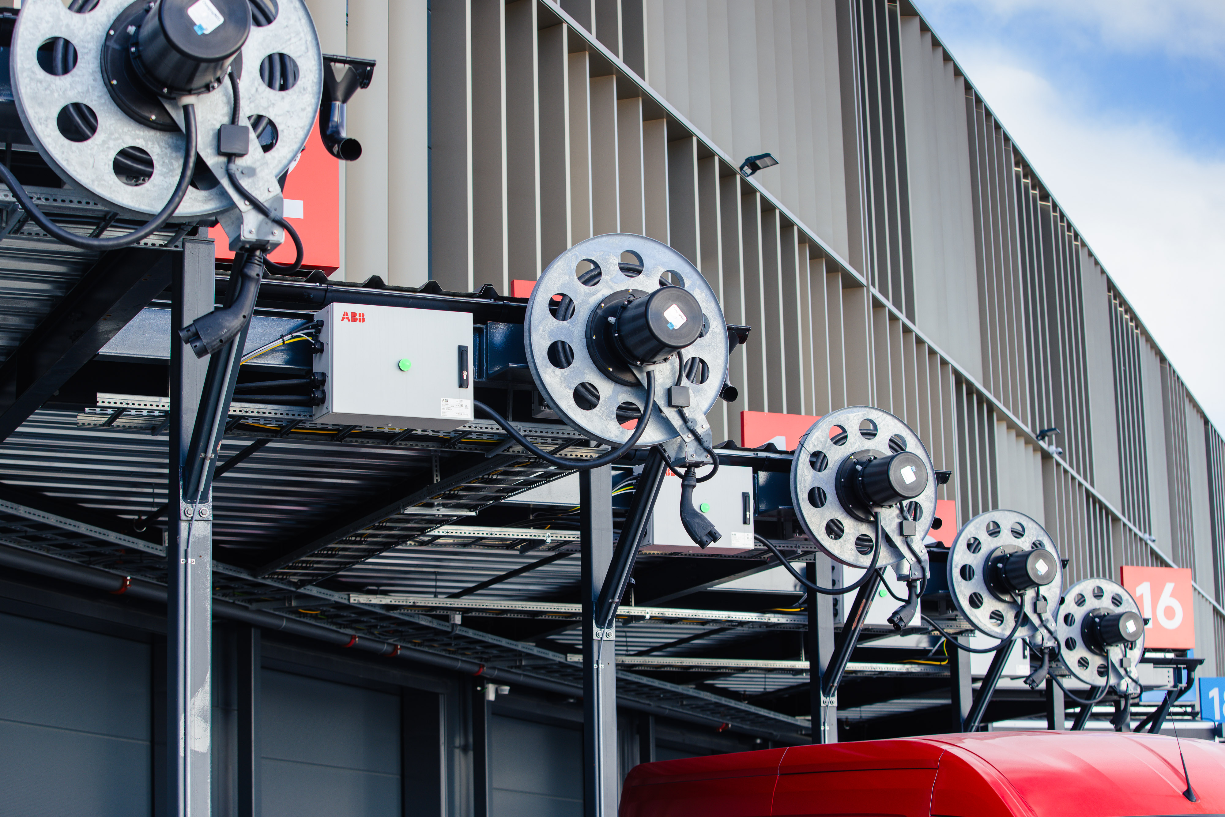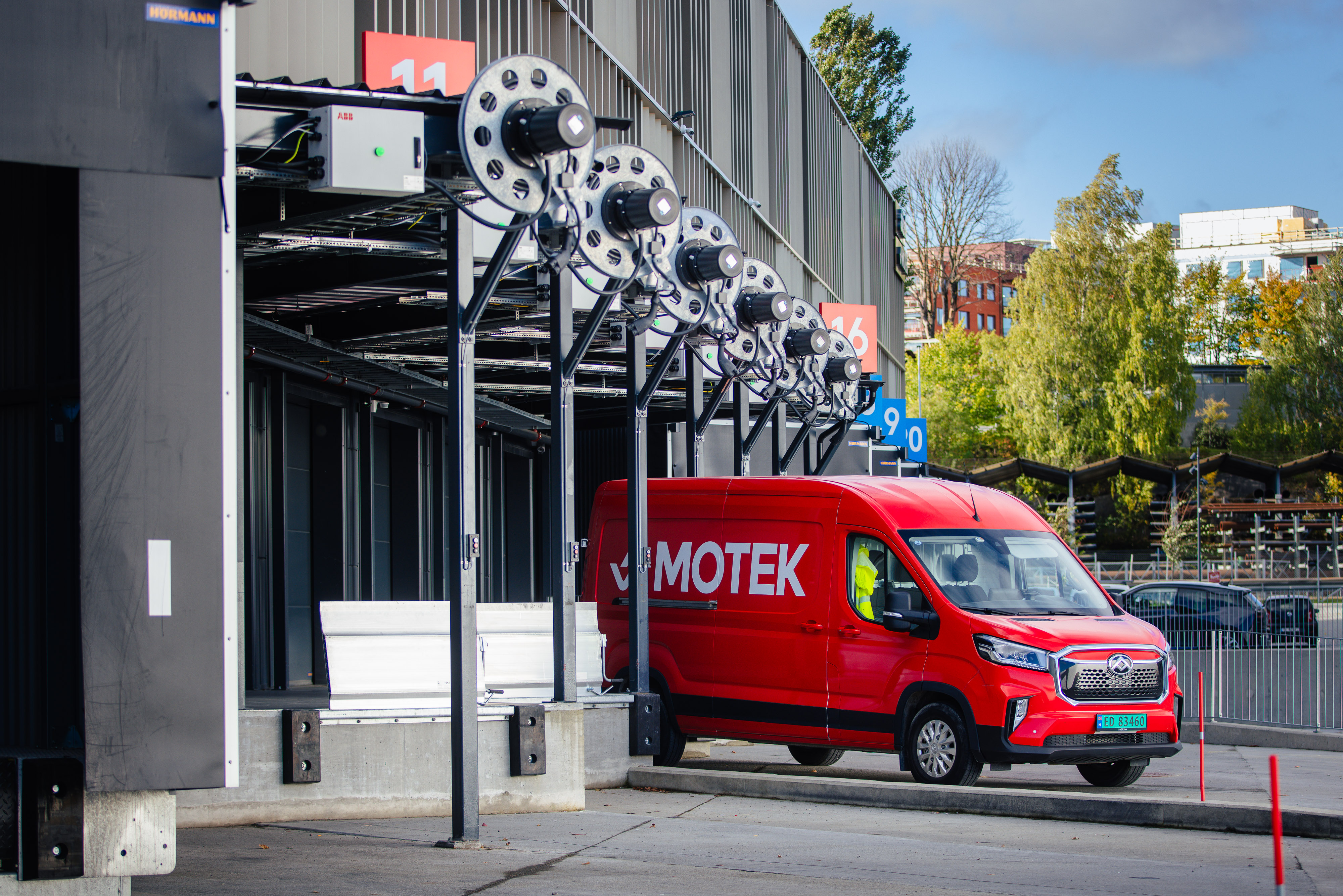 – Jeg trodde at det ville være en smal sak å få levert et slikt anlegg for å lade varebiler på lasteramper, men så enkelt var det ikke. Denne løsningen var bare på tegnebrettet og til utprøving hos ABB da vi tok kontakt, fortalte Jørn Sæbø, CFO og logistikkdirektør i Motek, som også har hovedkontor i bygget.