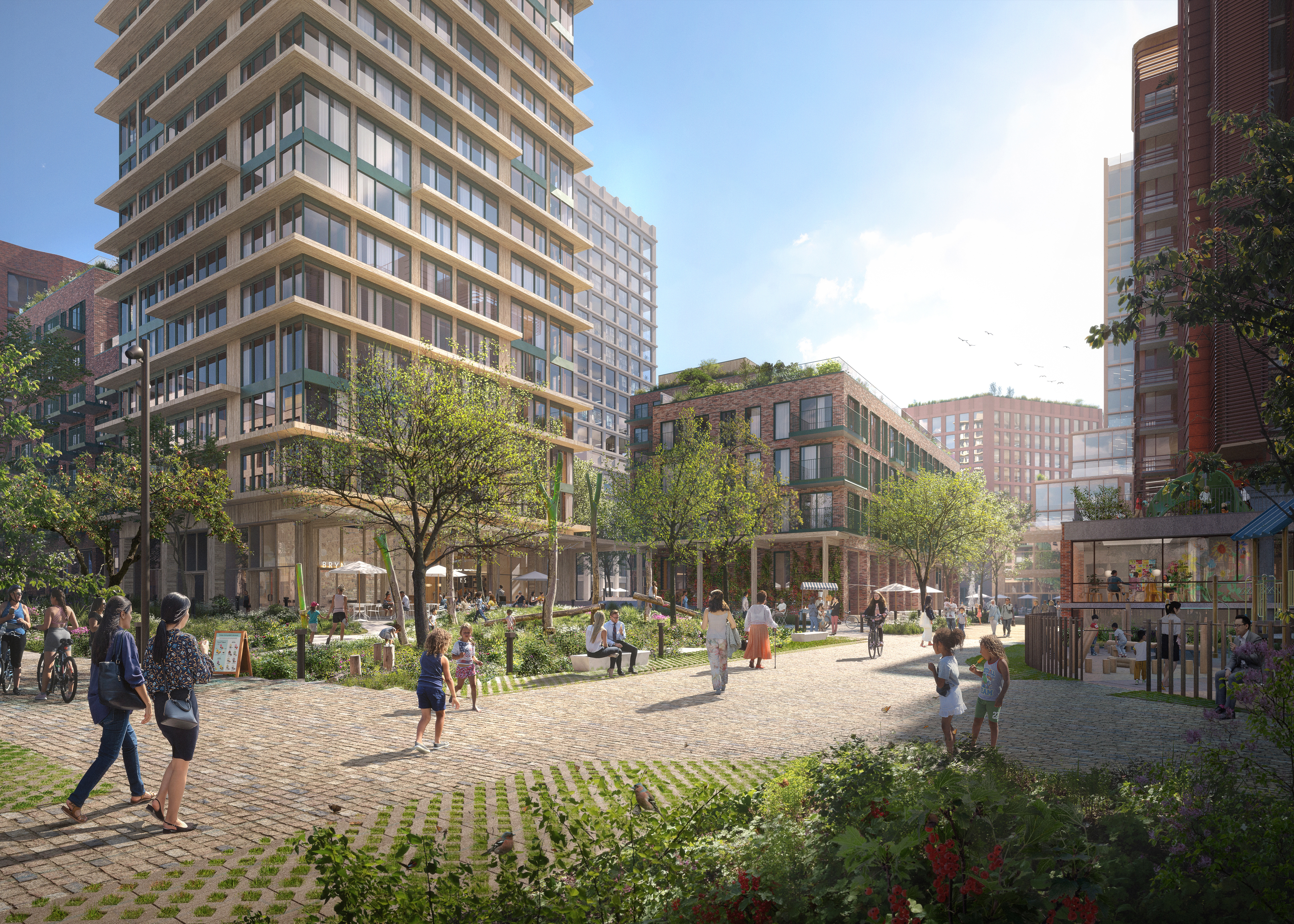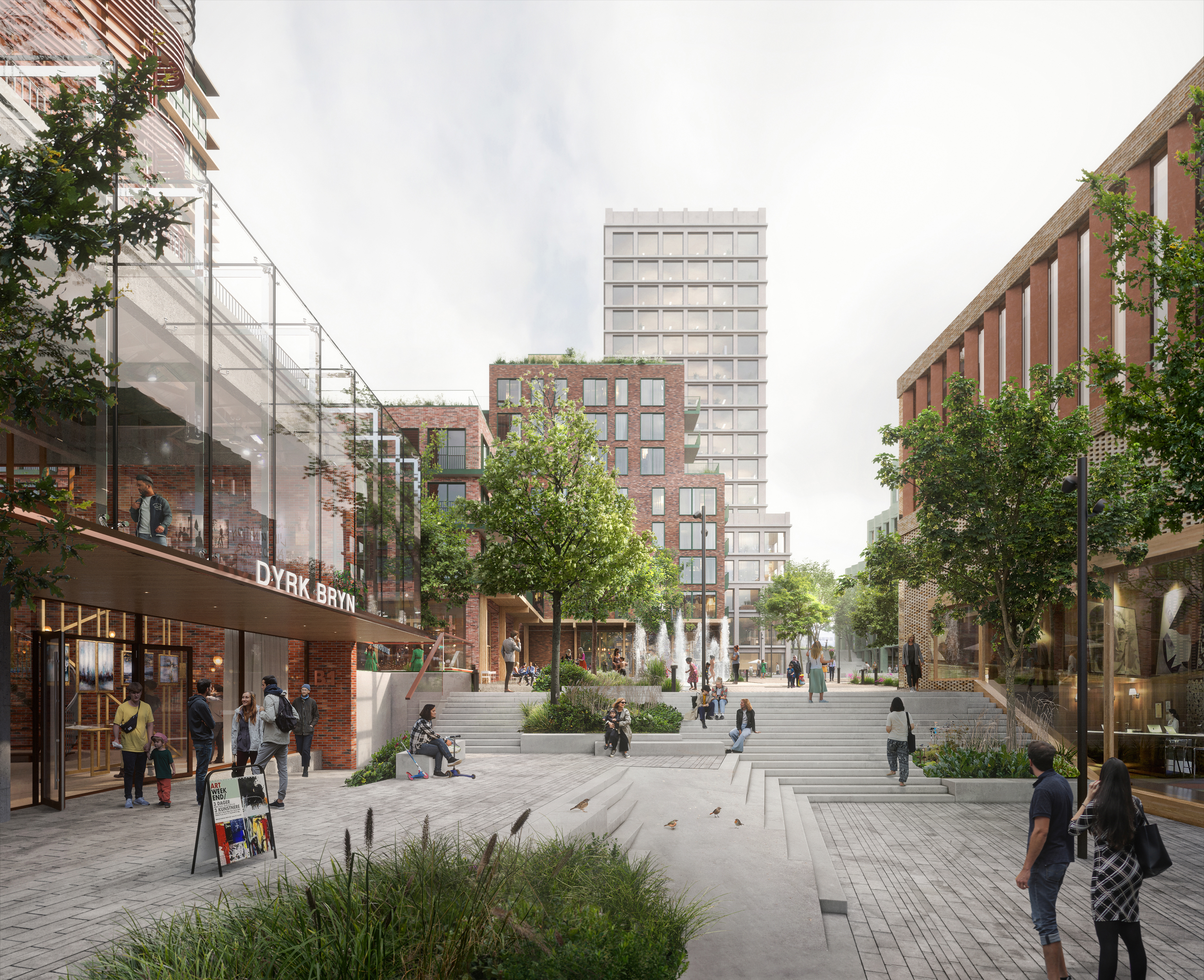 Bryn skal bli en viktig møteplass med godt kulturtilbud, lekne byrom, inkluderende arkitektur, attraktive næringer og spennende butikk- og serveringstilbud på gateplan.