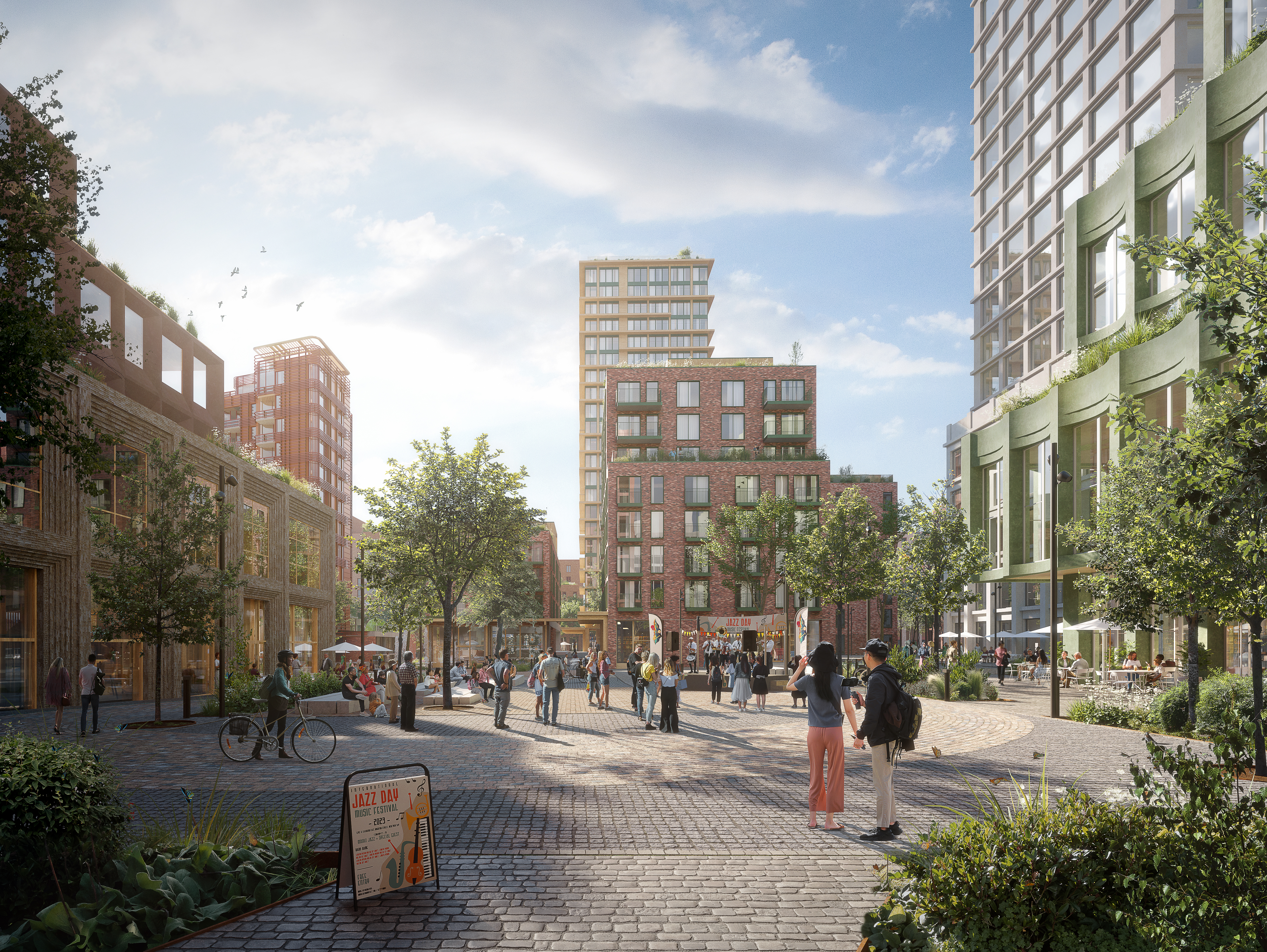 JM og Entra vil kombinere kvartalsstruktur, gode plasser og allmenninger, med tre høyhus på inntil 70 meter. Kombinasjonen av lav og høy bebyggelse bidrar til å skape gode byrom og gi lys og luft inn i de sentrale byrommene.