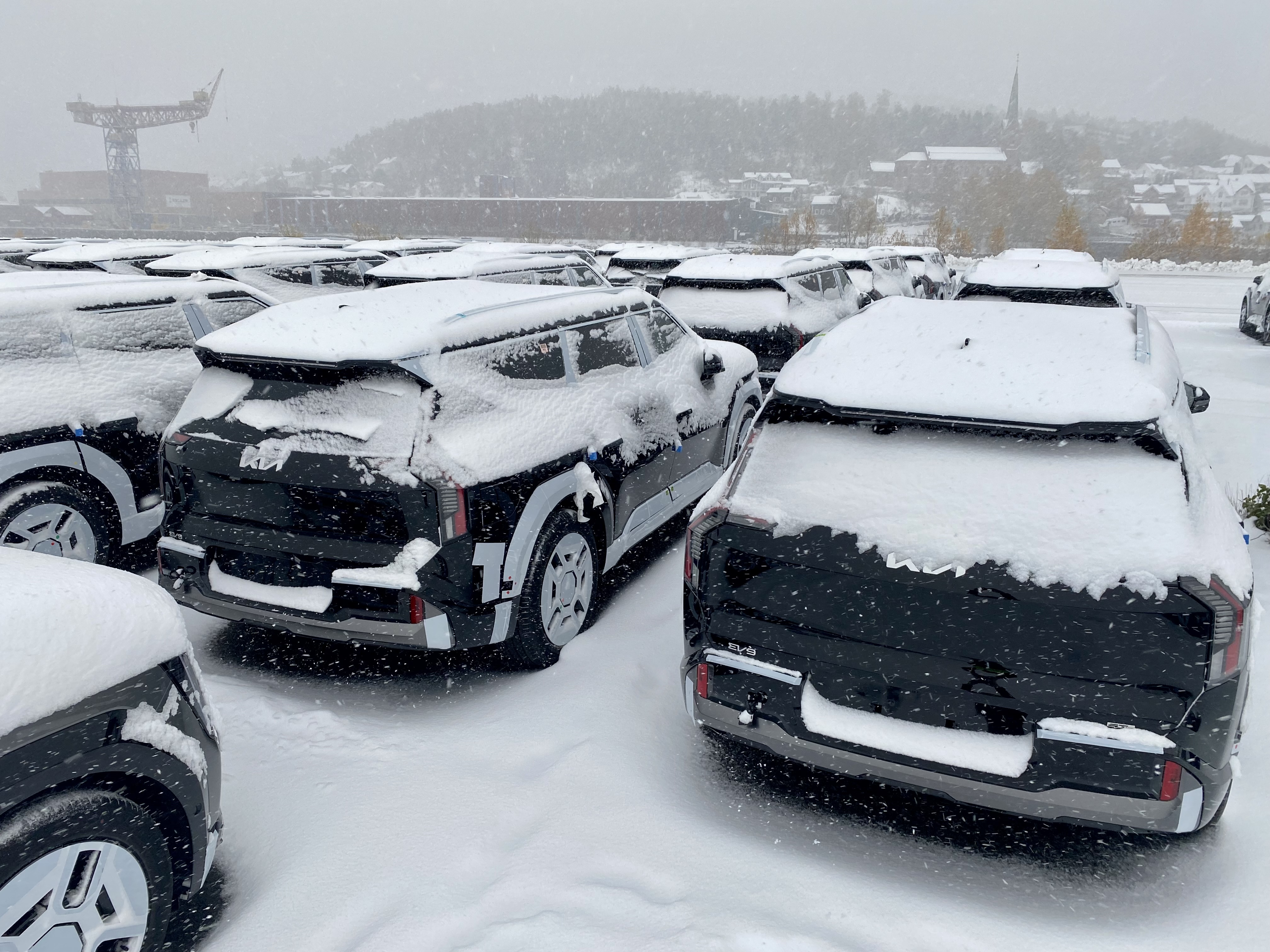 Mandag sto de første Kia EV9 på norsk jord. Eller rettere sagt snø. Det ble en frisk velkomst for det nye flaggskipet.