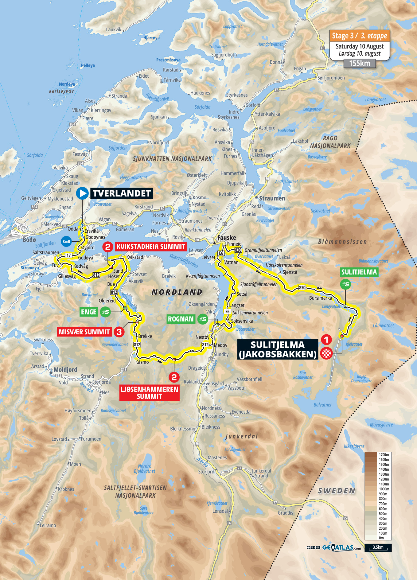 Etappe 3 - Tverlandet > Sulitjelma (Jakobsbakken), 155 km.