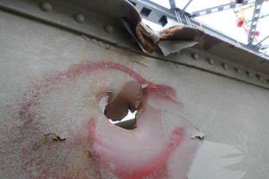 Skadene er i hovedsak samlet i endene av bruspennene, der den siden som havnet i elva har fått skader av sammenstøtet med elvebunnen eller brufundamentet. Den siden av bruspennene som sto igjen har også fått skader som følge av kreftene som var i sving.