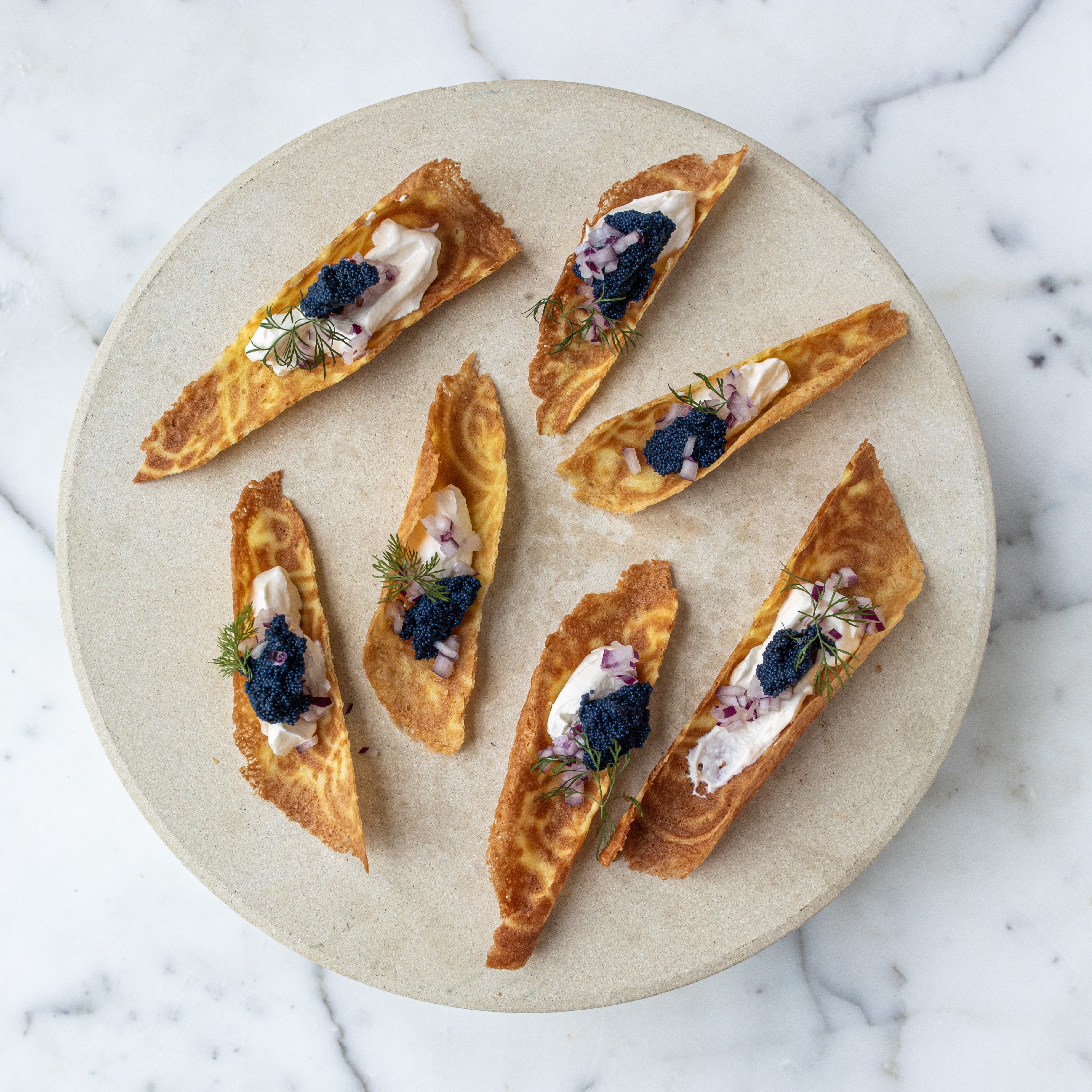 – Krumkaker kan spise som de er, fylt med pisket krem til dessert eller kaffekos eller hva med å prøve dem som en liten forrett med rømme, rødløk, kaviar og litt dill, foreslår Nordbø.