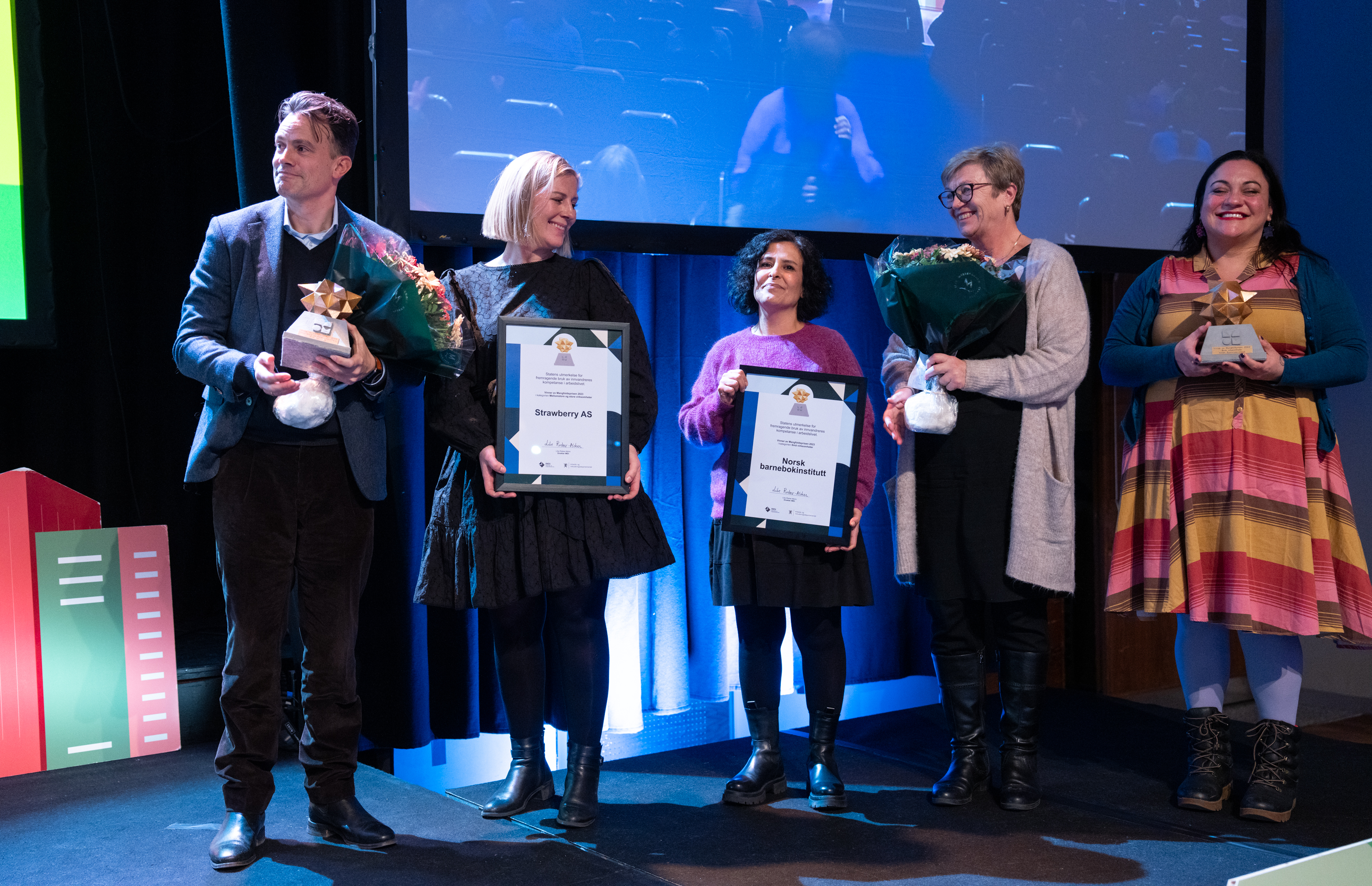 Norsk barnebokinstitutt ble i dag tildelt den nasjonale mangfoldsprisen i kategorien små virksomheter. Strawberry AS fikk prisen i kategorien mellomstore og store virksomheter.
