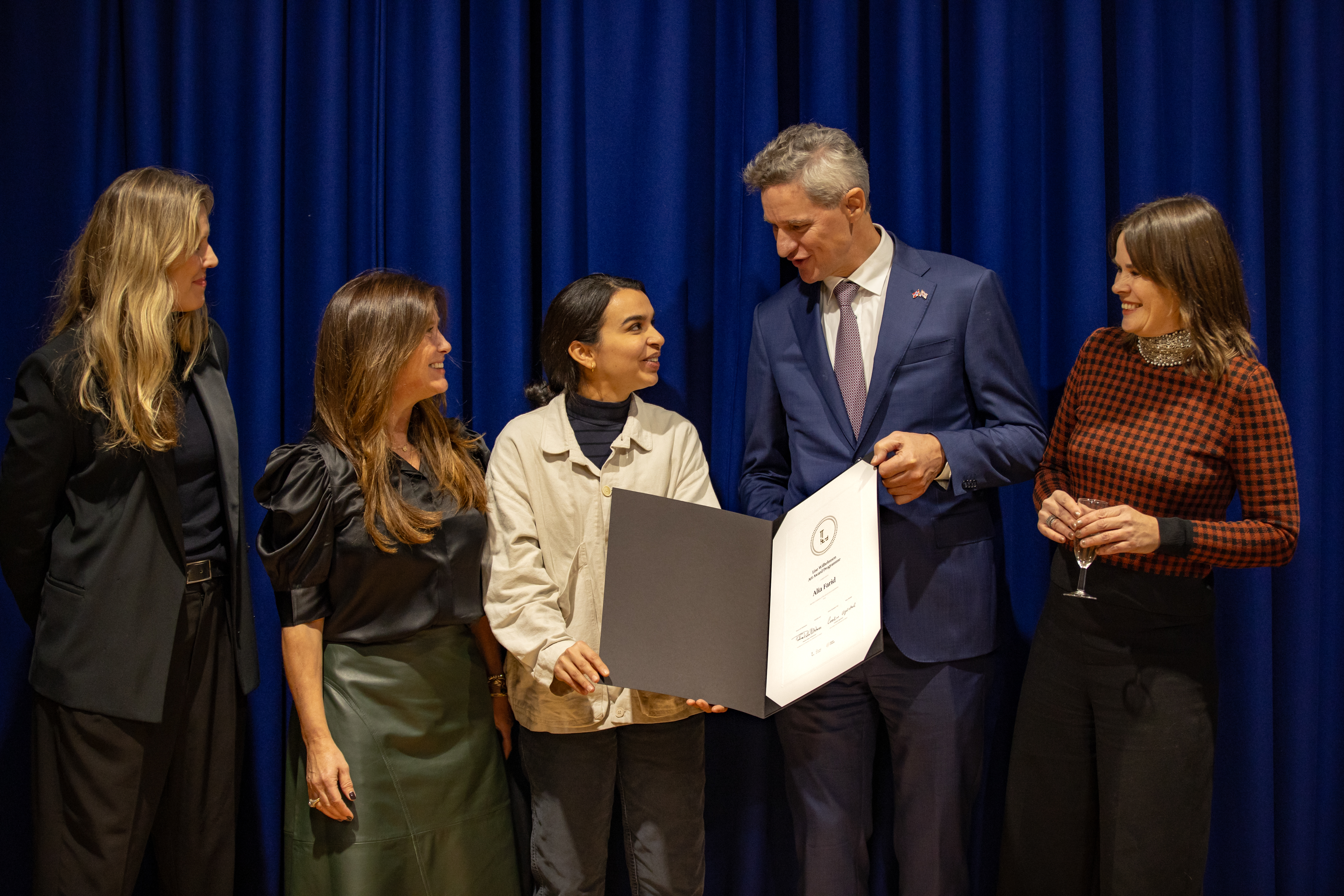 Mottakelsen fant sted torsdag 30. november på Chisenhale Gallery i London, i anledning åpningen av Elsewhere – Farids første separatutstilling i Storbritannia. Under den private mottakelsen, som ble arrangert sammen med den norske ambassaden i London og ambassadør Tore Hattrem, overrakte Ugelstad og Paulina Rider Wilhelmsen, grunnlegger av prisen, diplomet til Farid.