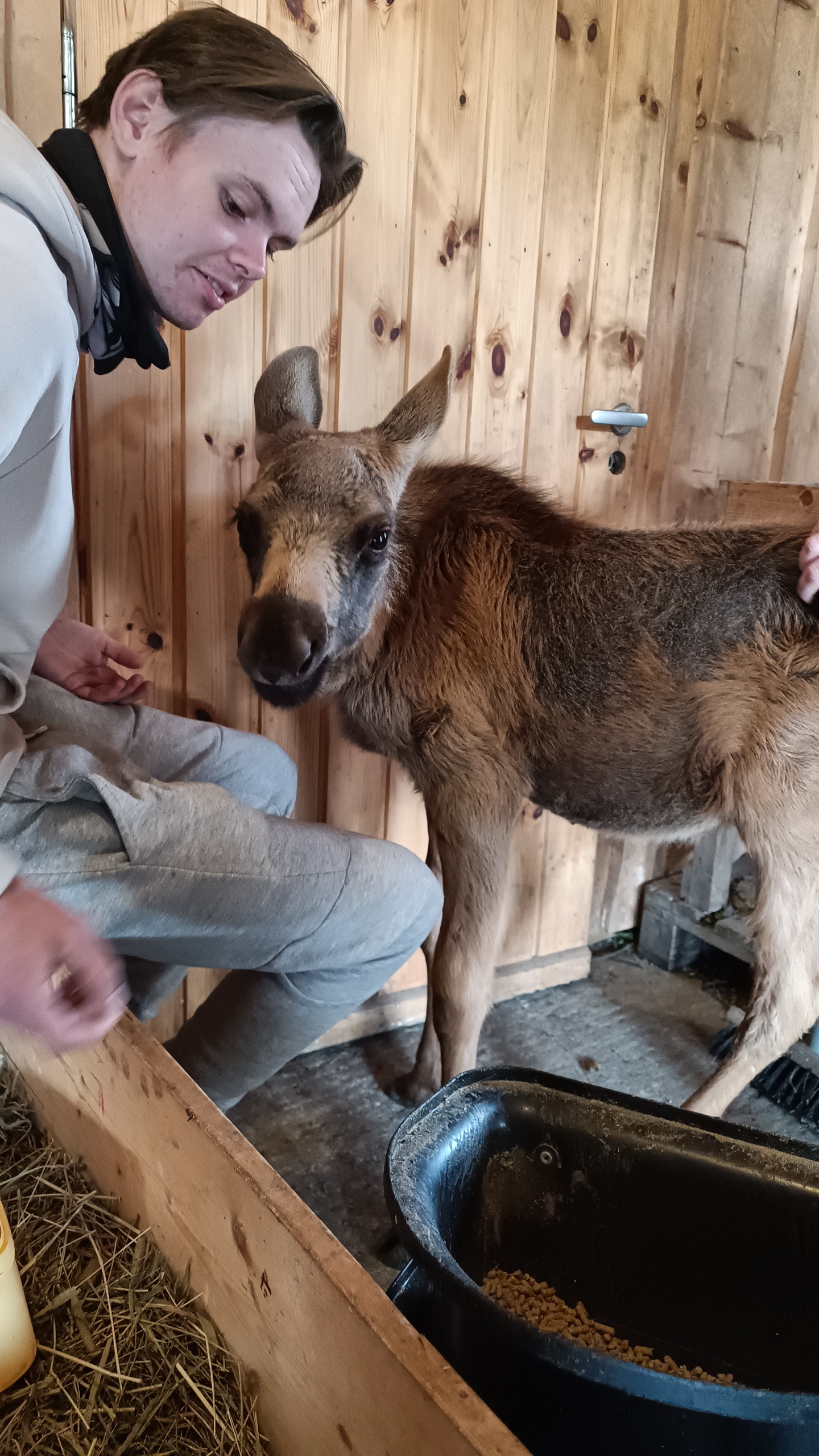 Dette er ikke første gangen Langedrag har tatt imot en morløs elgkalv, og elghunden Arja er alltid en selvskreven medhjelper på å gjøre morløse individer trygg på Langedragslivet og det mangfold av dyr som er her. Arja har i sommer også vært fostermamma til ulvevalpen Nare, og tidligere flere andre nykommere her på gården som rådyrkalver, lam, due-unge, m.fl. Vennskap på tvers av arter / raser…, - ja her har vi mennesker noe å lære!