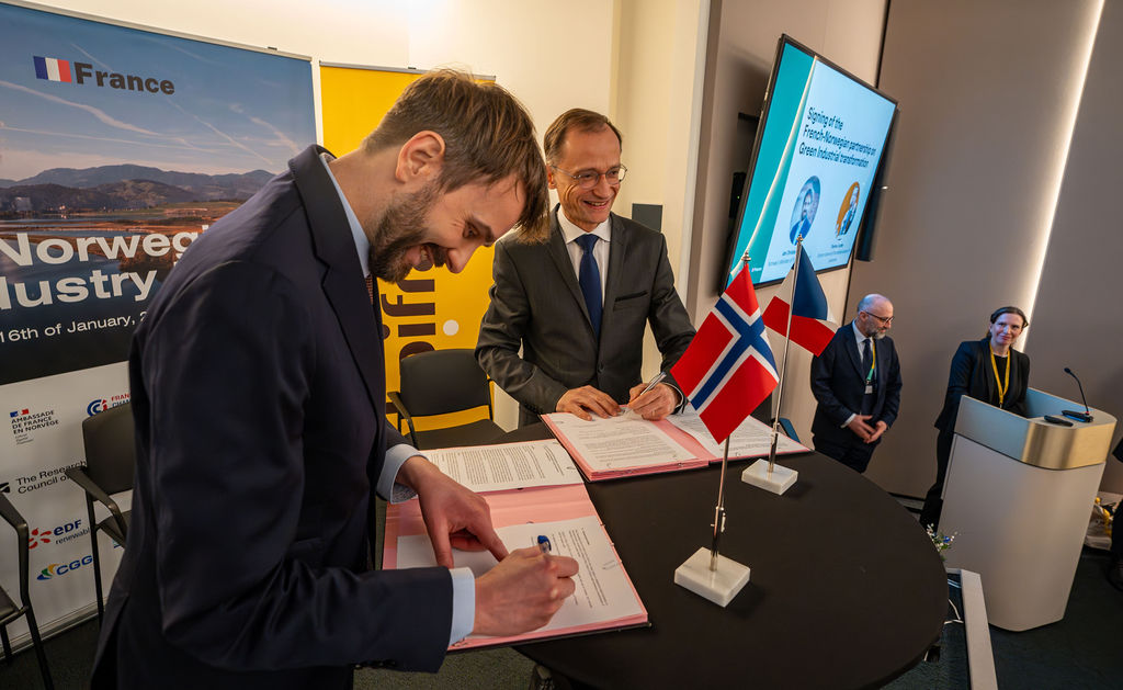Tirsdag 16. januar signerte næringsminister Jan Christian Vestre et grønt strategisk industripartnerskap med Frankrike.