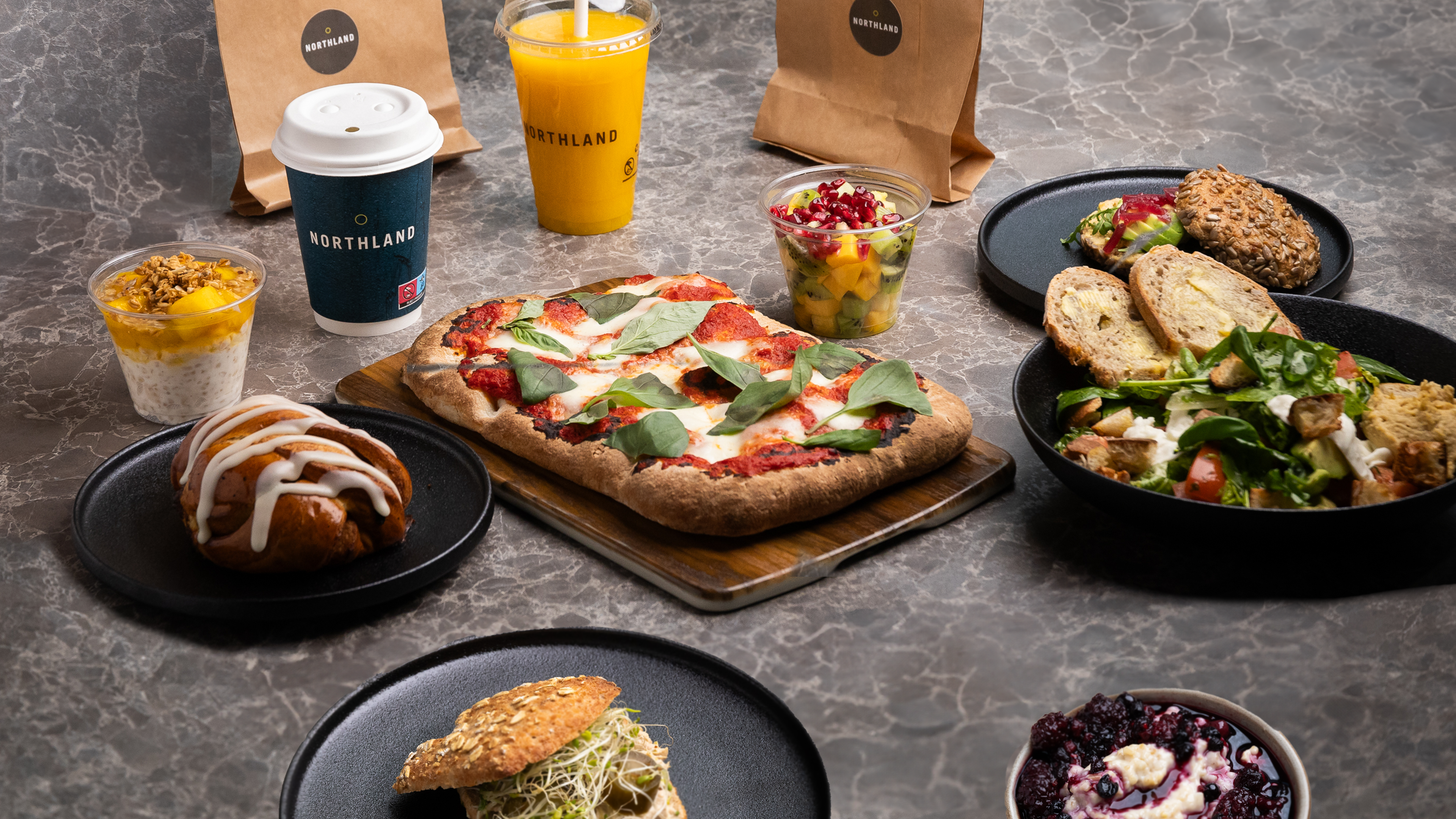Med åpningstider fra 07:00 til 23:00, og konseptets sentrale beliggenhet, skal Northland møte kundenes behov gjennom hele dagen. Konseptet deles inn i en «grab & go»-sone samt en større sone med bord og sittegrupper for servering.