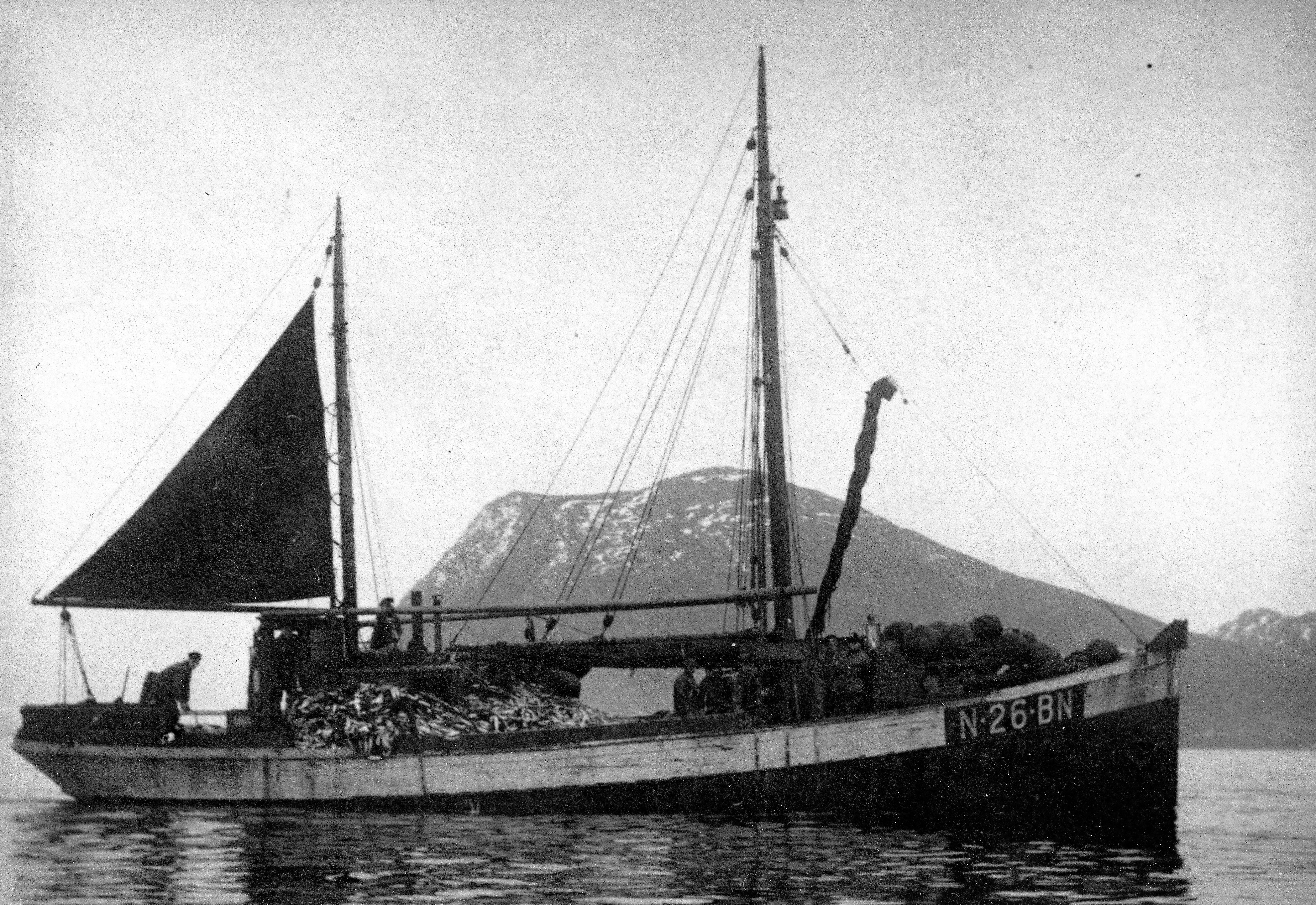 Fiskebåten Faxsen i et gammelt bilde fra 1928.