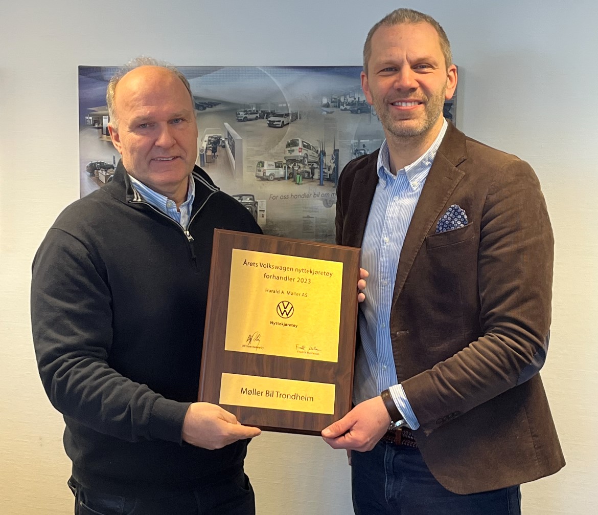 - Møller Bil Trondheim leverer «hele pakken». Forhandleren selger flest varebiler i sitt distrikt med en svært imponerende markedsandel, ivaretar kunder og ansatte på en meget god måte og strekker seg langt for å levere mer enn det som forventes, sier Fredrik Matheson, direktør for Volkswagen Nyttekjøretøy.