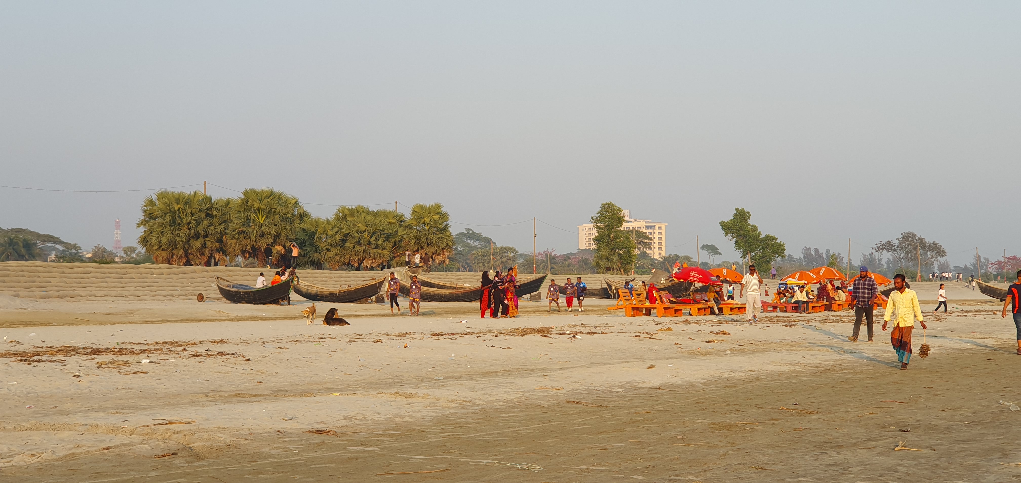 Bildet viser aktivitet på stranden ved Kuakata i Bangladesh