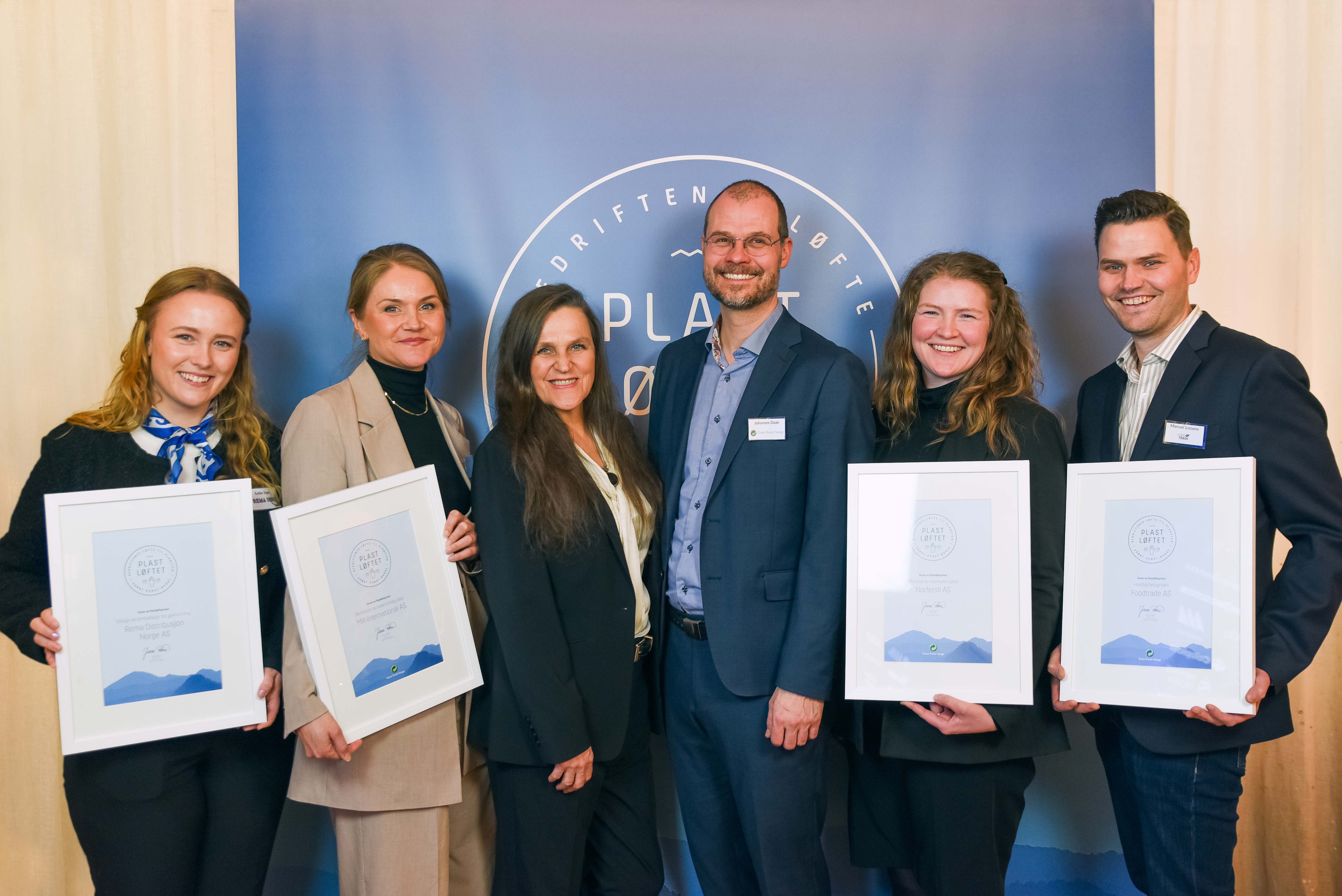 Prisen for «Design for gjenvinning» fikk Kjeldsberg Kaffe og Rema 1000 for sin nye kaffepose i monomateriale PE. Prisen for «Økt bruk av gjenvunnet plast» gikk til Norfersk for utviklingen av resirkulerte PET-skåler til kjøttprodukter. Prisen for «Reduksjon av unødvendig plast» fikk Mill for sin nye emballasje til sine ovner. «Holdbarhetsprisen» gikk til FoodTrade for deres emballasje til nøtter, frø og tørket frukt.