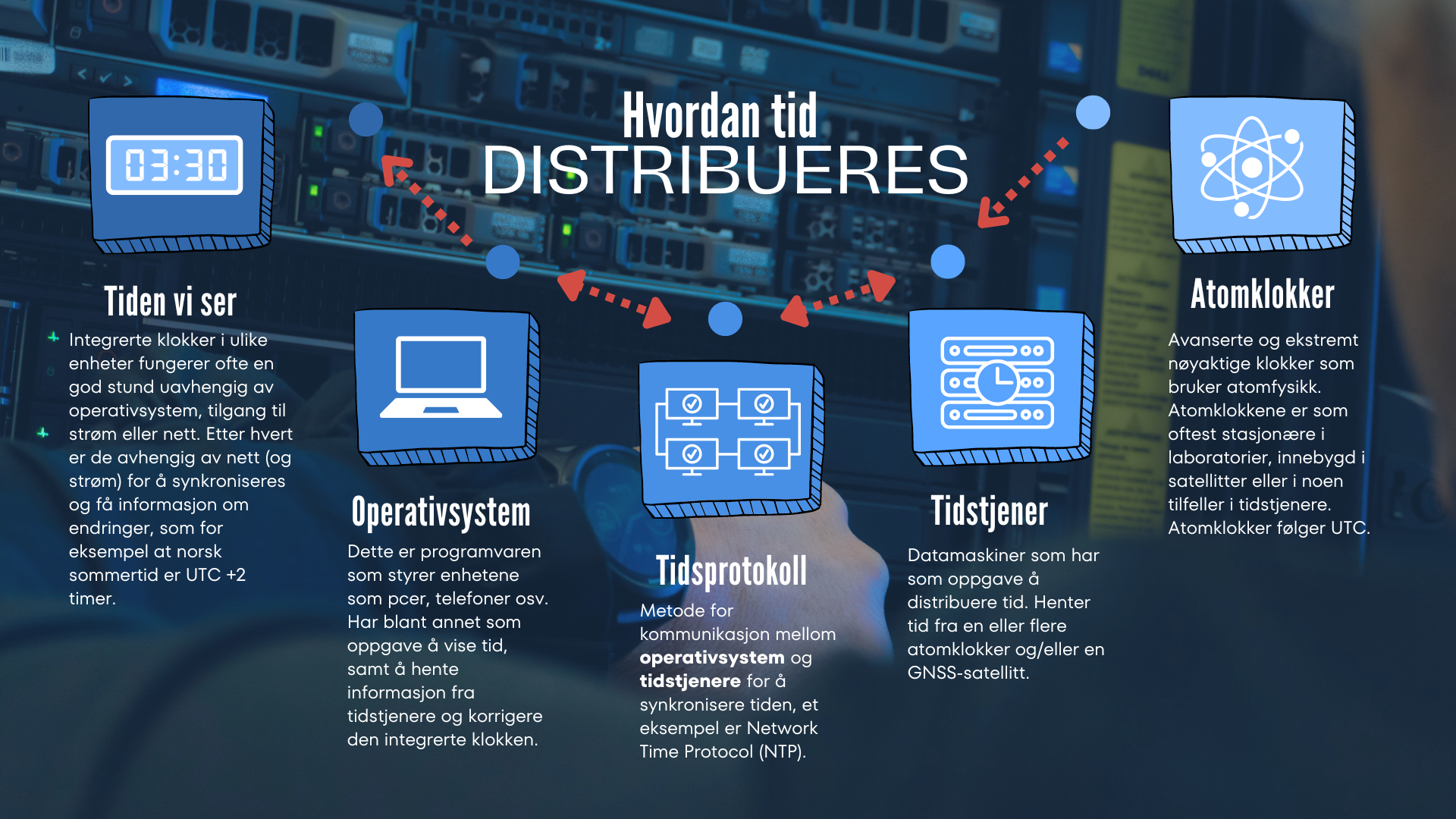 Hvis ikke Justervesenet stiller klokkene, lurer du sikkert på hvordan PC-en, nettbrettet eller mobilen din kan vite hva som er riktig tid. Det er det operativsystemet i enheten som tar seg av. Enheter som PC og mobil har faktisk en selvstendig klokke som tikker og går selv når du skrur av eller kobler fra nettet, men de er helt avhengige av operativsystemet for å få sjekket at klokka går riktig og å «få beskjed om» at det er sommertid.