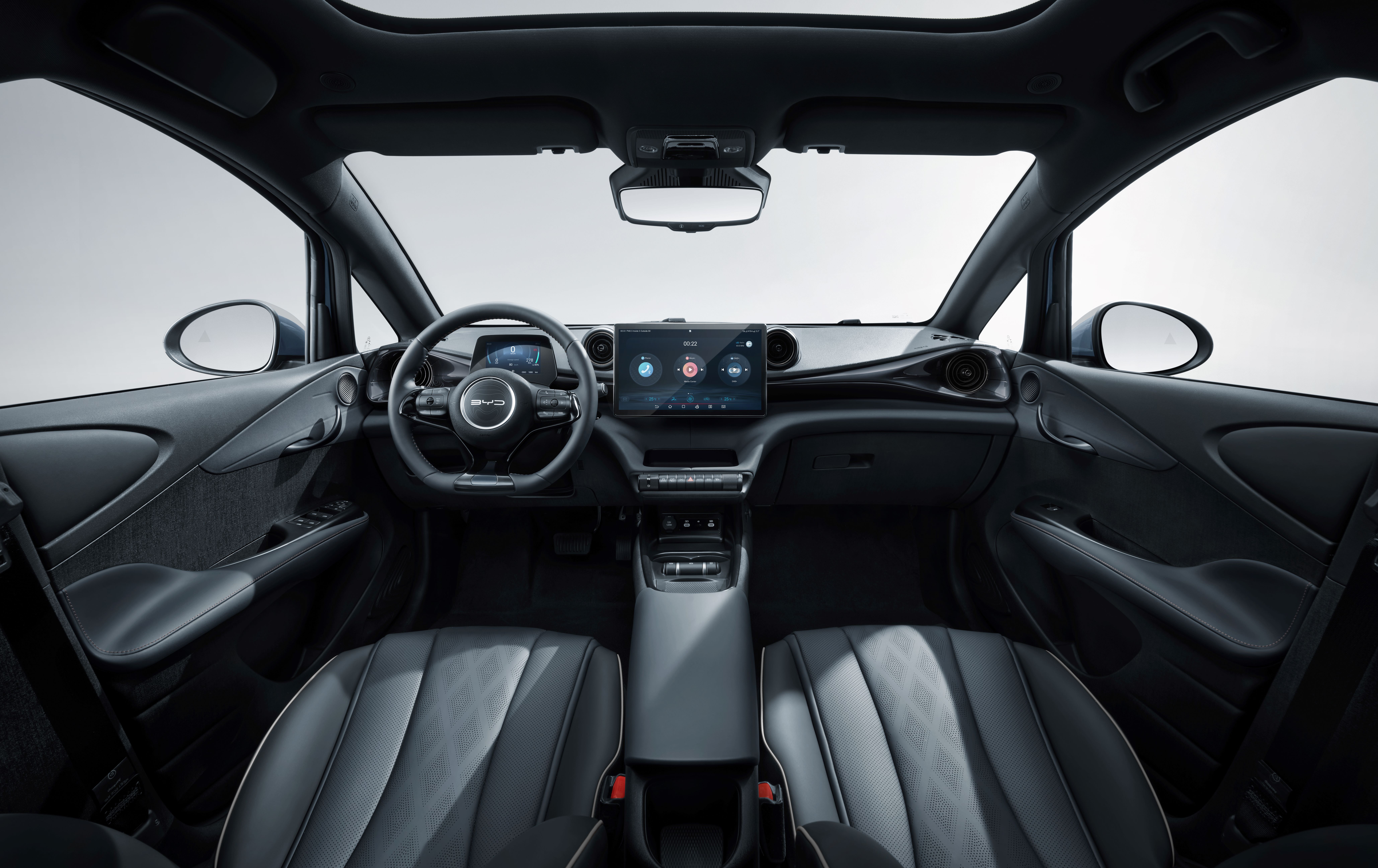 Tross sin kompakte størrelse, imponerer BYD Dolphin med romslig plass innvendig. Med det anerkjente Blade-batteriet plassert lavt i chassiet, tilbyr den god plass for både fører og passasjerer.