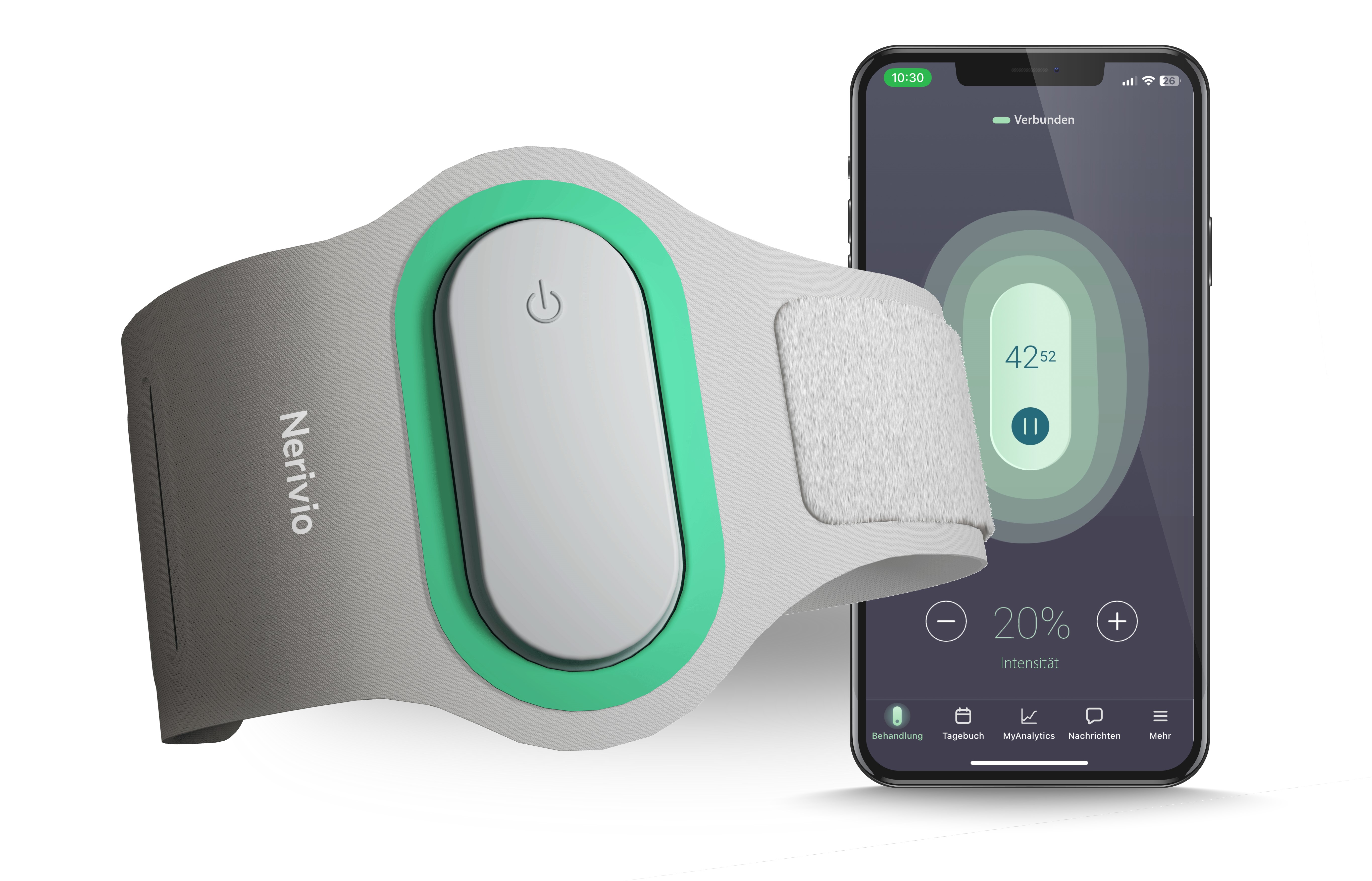 - Nerivio® is worn on the upper arm during treatment and controlled by a smartphone app, making it comfortable and portable.