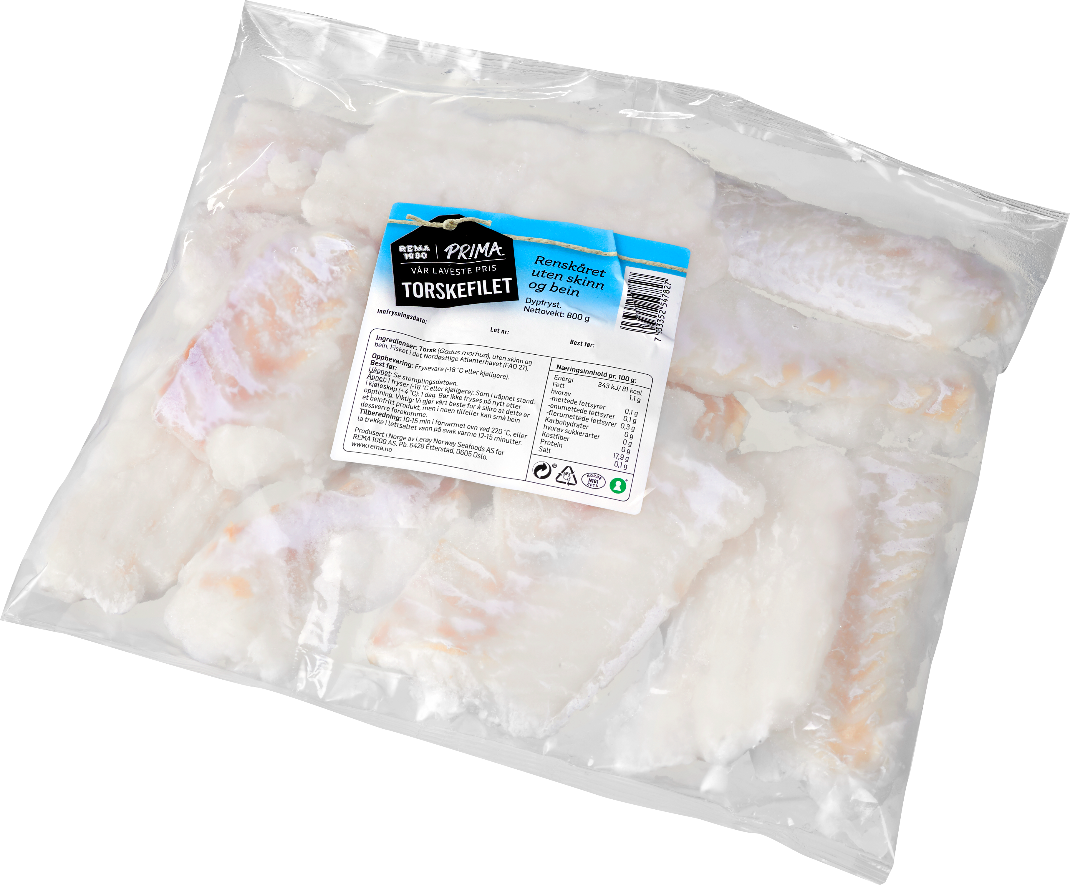 Tilbakekaller PRIMA torskefilet 800g med best før dato 03.02.2025
