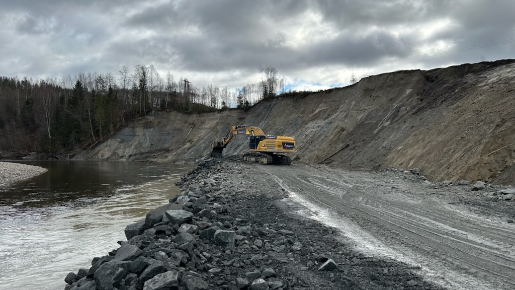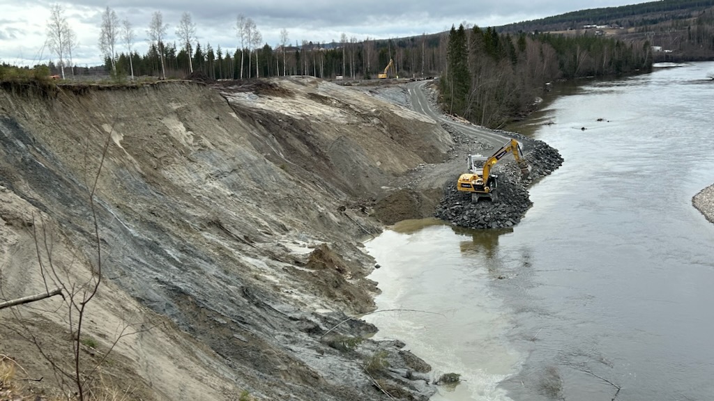 – Flomsikringsvollen er viktig for å hindre at elva graver seg inn i skråningen med påfølgende utrasing, understreker Eiterjord