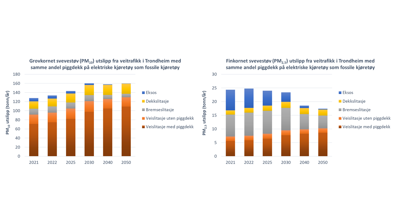 Forskerne vurderte flere fremtidsscenarier basert på nåværende og planlagt andel elektriske kjøretøy, andelen biler med piggdekk og vekten på kjøretøyet.