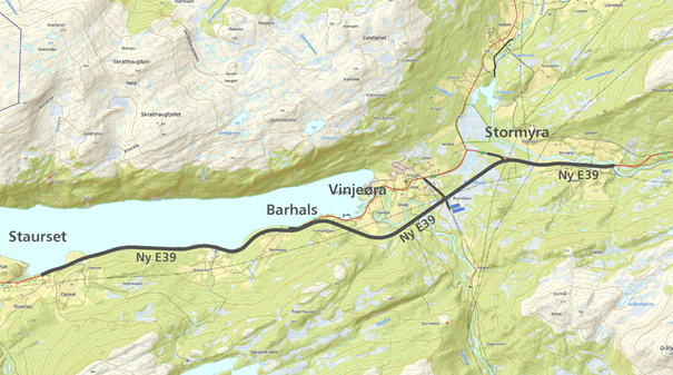 Delstrekninga forbi Vinjeøra, fra Stormyra til Staurset, omfatter i hovedsak bygging av ca 10,6 km ny to-felts E39. Store deler av strekningen går langs eksisterende veg, med delvis skrånende terreng. Arbeidene stiller krav til god logistikk og erfaring i håndtering og flytting av store massevolum.