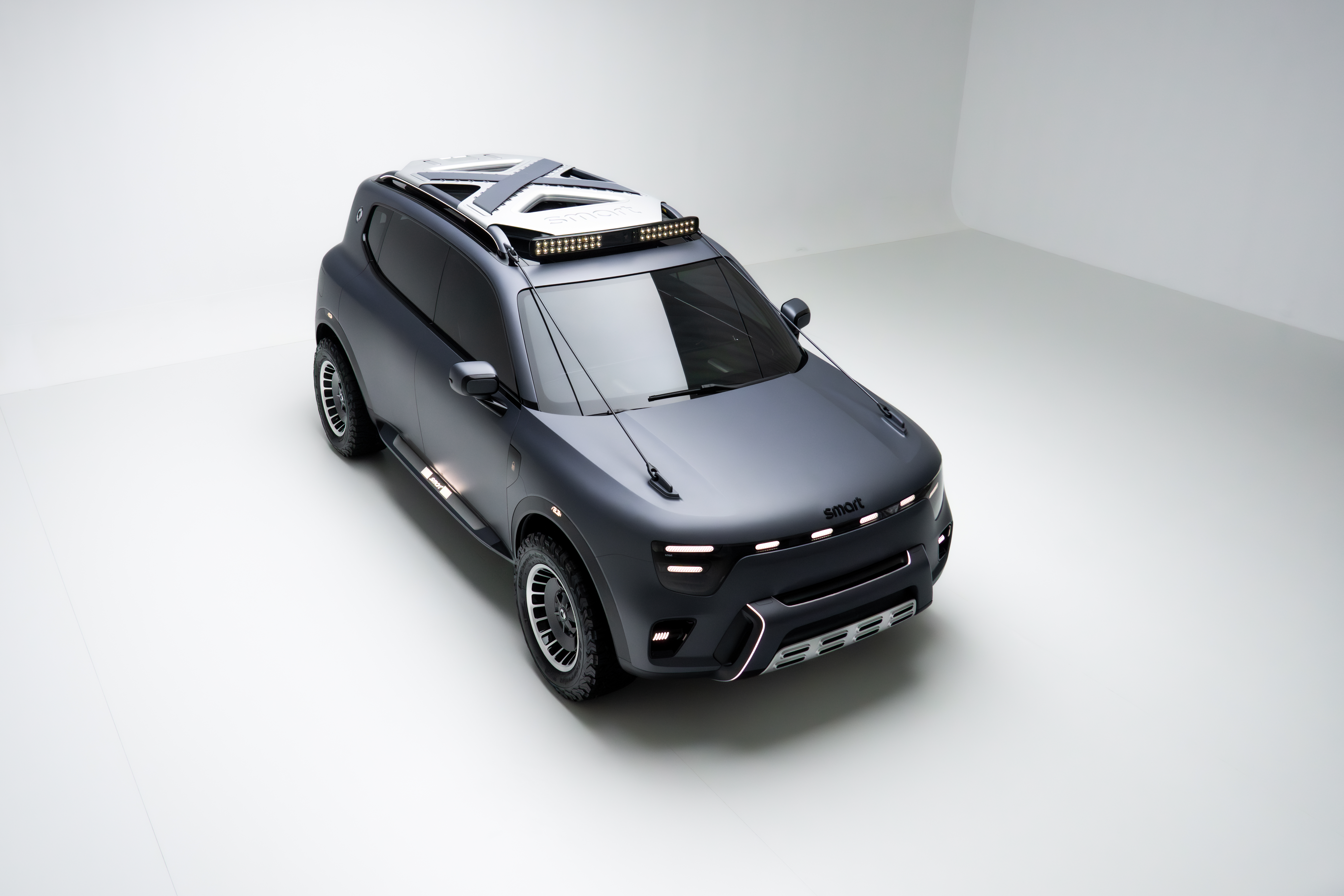 smart Concept #5 har en kantete oppreist silhuett og en karakteristisk struktur på taket som antyder bilens prestasjoner både når det gjelder ytelser og praktiske løsninger.