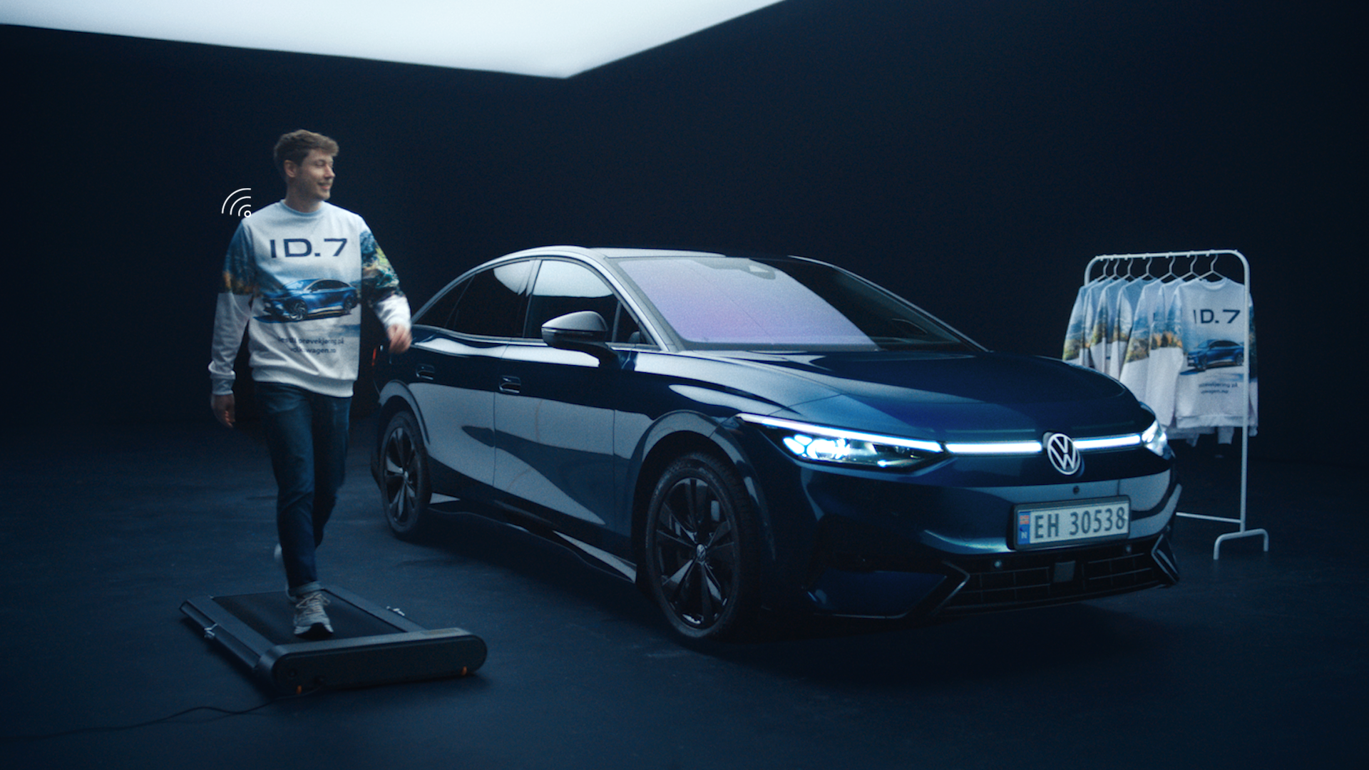 Volkswagen-forhandlere over hele landet begynte forrige uke å dele ut ID.7-gensere til kunder som kom innom sin Volkswagen-forhandler. Genserne har en innebygget sensor – som teller skritt og dermed hvor langt du går.