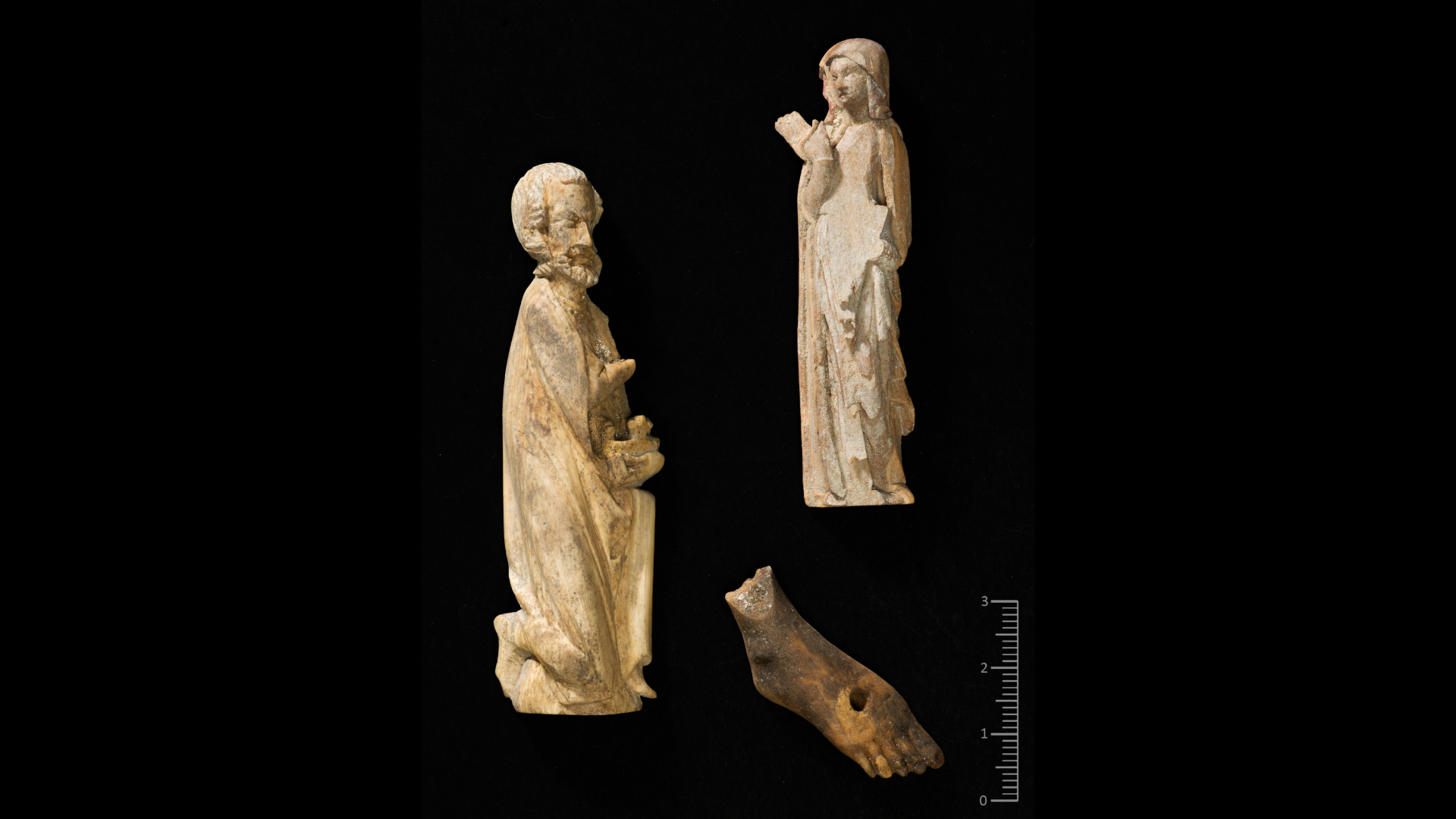 I tillegg til elfenbensfiguren som forestiller Melkior ble det funnet en elfenbensfigur som forestiller Jomfru Maria. De to figurene hørte til to forskjellige altertavler. Utskjæringene er av svært høy kvalitet, med spor av maling og forgylling. På 1300-tallet ble slike altertavler laget i Frankrike og England. I tillegg til figurene fant arkeologene Jesu fot fra et krusifiks.