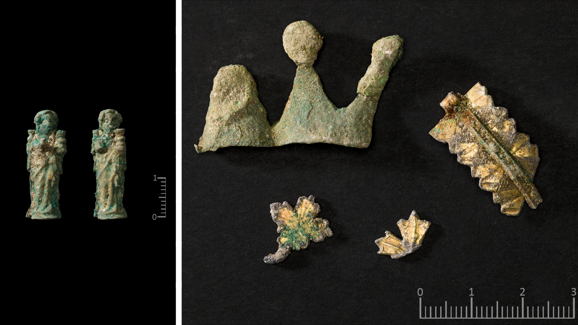 Flere forgylte religiøse fragmenter ble funnet i krypkjelleren. Fragmentene har inngått i større gjenstander, for eksempel monstranser eller prosesjonskors, som ble brukt under messen.