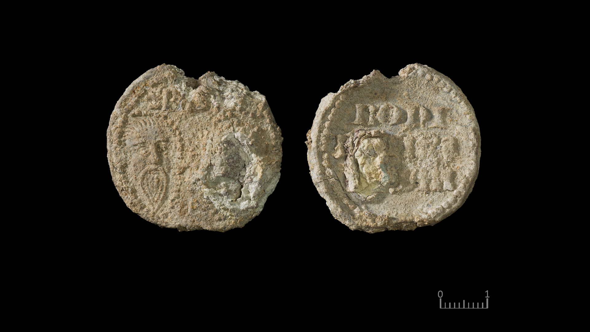 Et eksklusivt segl fra Pave Bonifatius VIII (1294-1303). Seglet viser fremdeles deler av navnet til paven. Den andre siden viser Peter og Paulus. Seglet ville ha vært festet til en pavelig bulle, et brev fra paven, som i dette tilfellet trolig var adressert til biskop Arne.