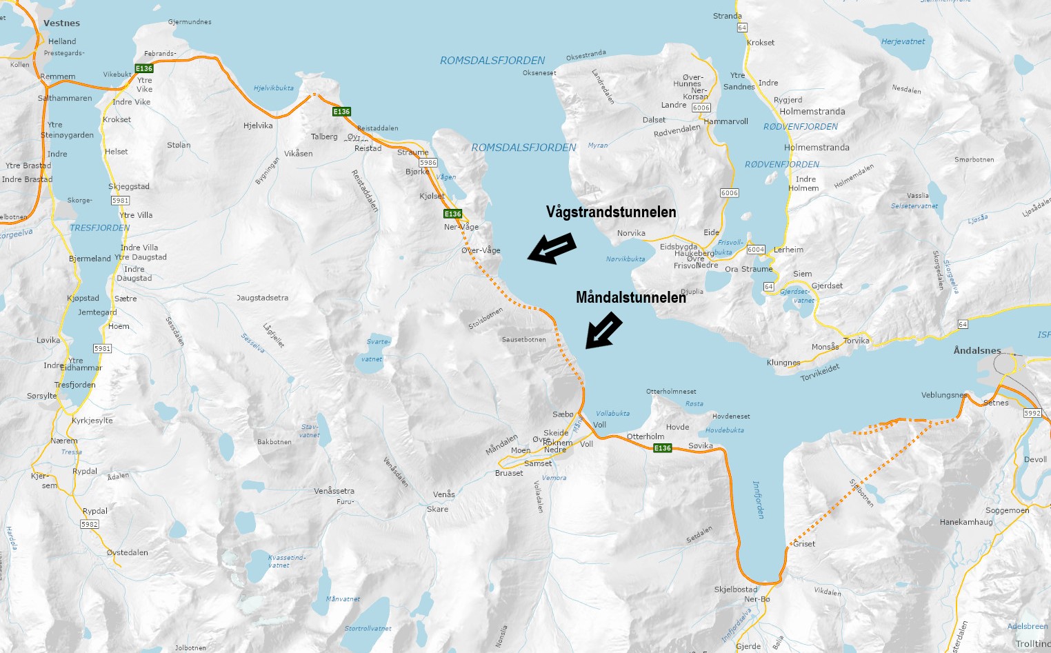 E136 Måndalstunnelen i Rauma kommune stenges onsdag kveld for beredskapsøvelse