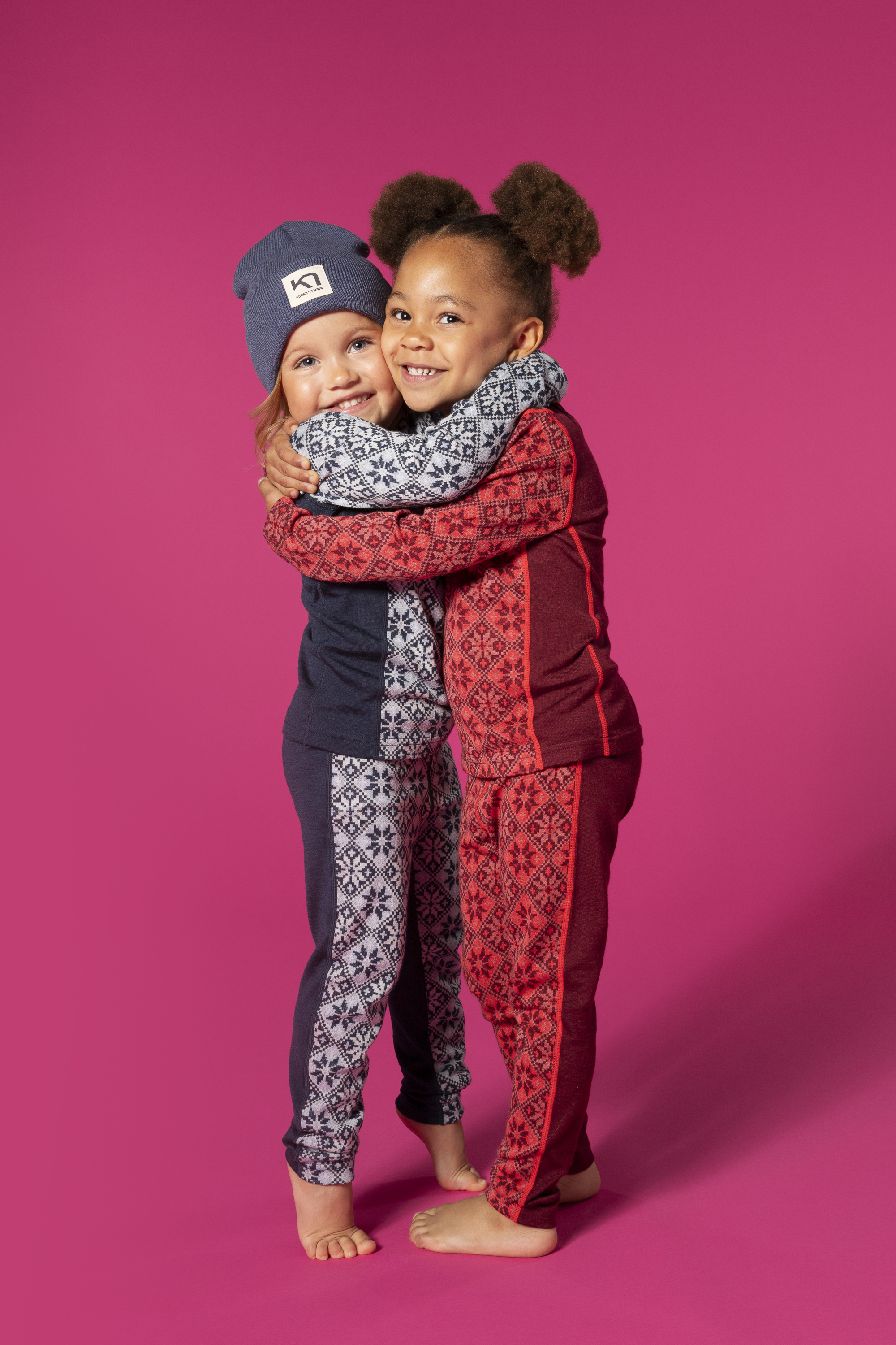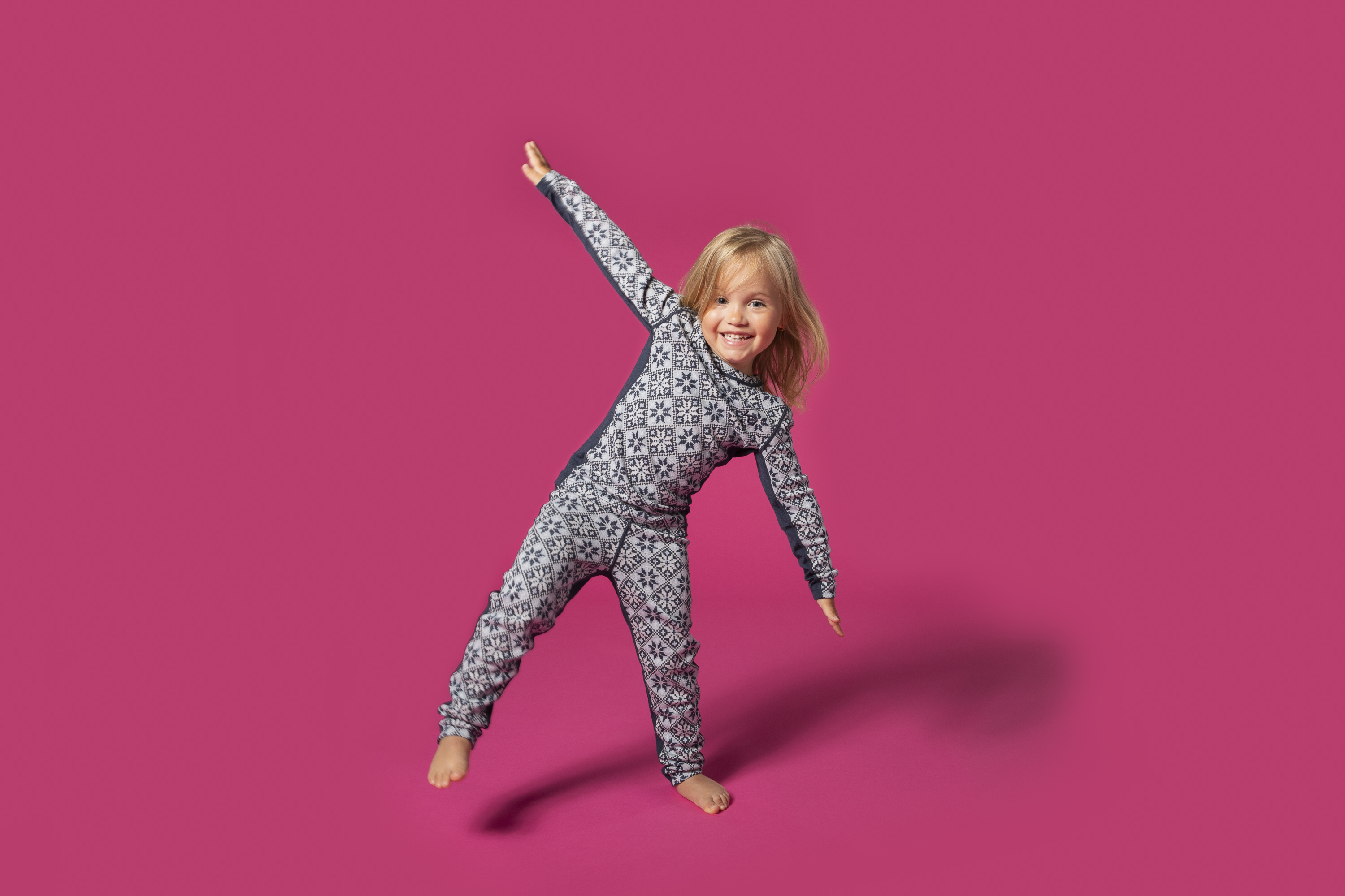 - Klær må være slitesterke. Barn er (heldigvis) ikke opptatt av å ta vare på klærne sine når de leker. De krabber, klatrer, drar i hverandre, hopper, spretter, river osv – derfor er det viktig at klærne er slitesterke og tåler en trøkk. Dette er bakgrunnen for at Kari Traa-ullkolleksjonen laget av 60 % ull og 40 % modal, en materialkombinasjon som føles myk mot huden, samtidig som den er slitesterk under aktivitet.