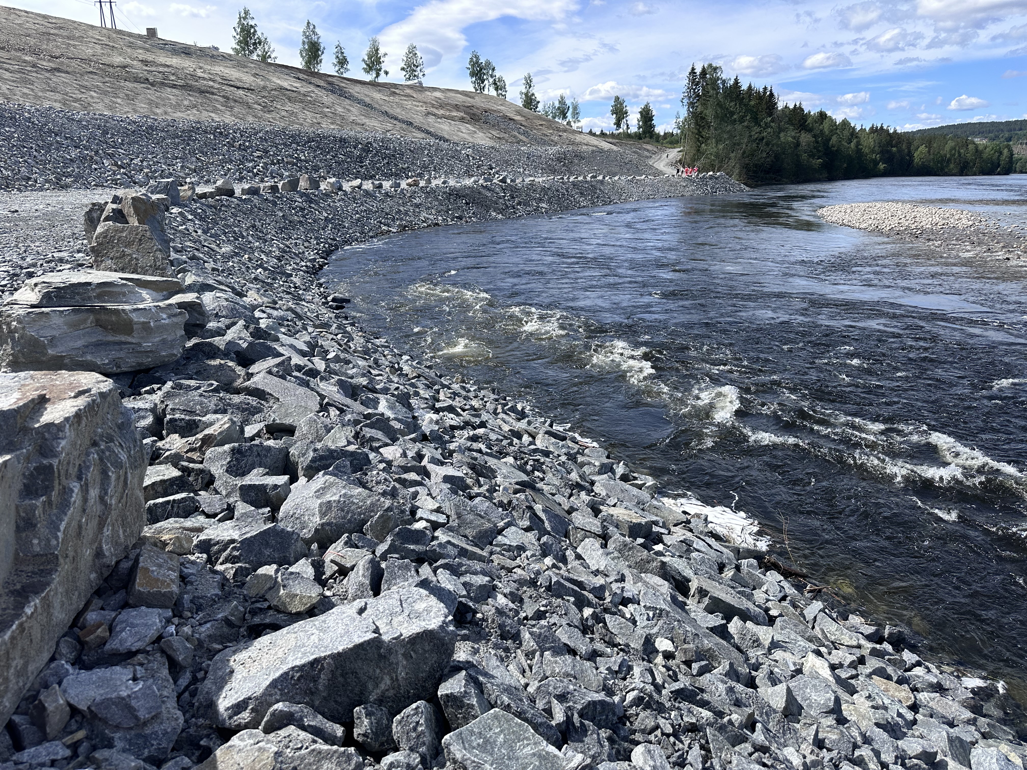 Det er gjennomført omfattende skogrydding. Nå skal de nye flomvollene sås til for å hindre utglidning og utvasking. Ellers gjenstår bare mindre tilleggsarbeider knyttet til drenering videre nordover.