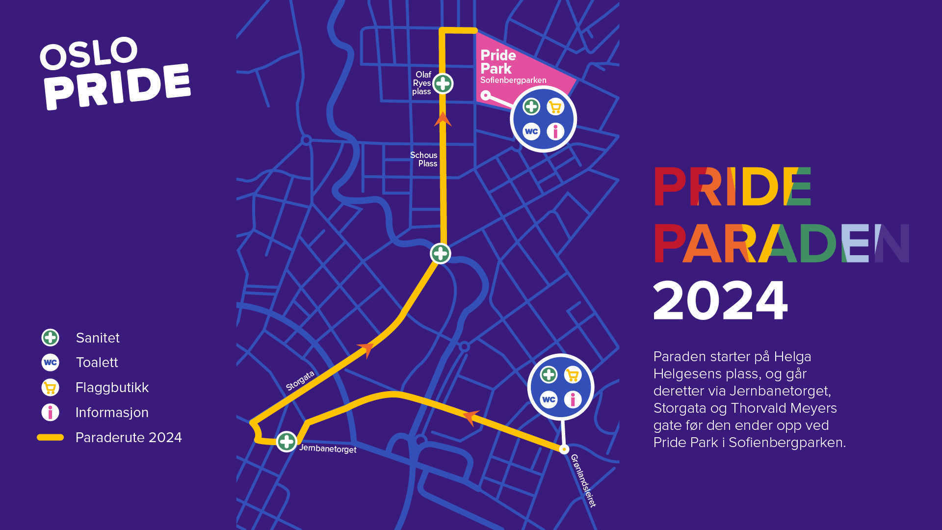 I år går paraden fra Grønland via Jernbanetorget til Sofienbergparken. Det blir egen tv-sending fra paraden på NRK1.