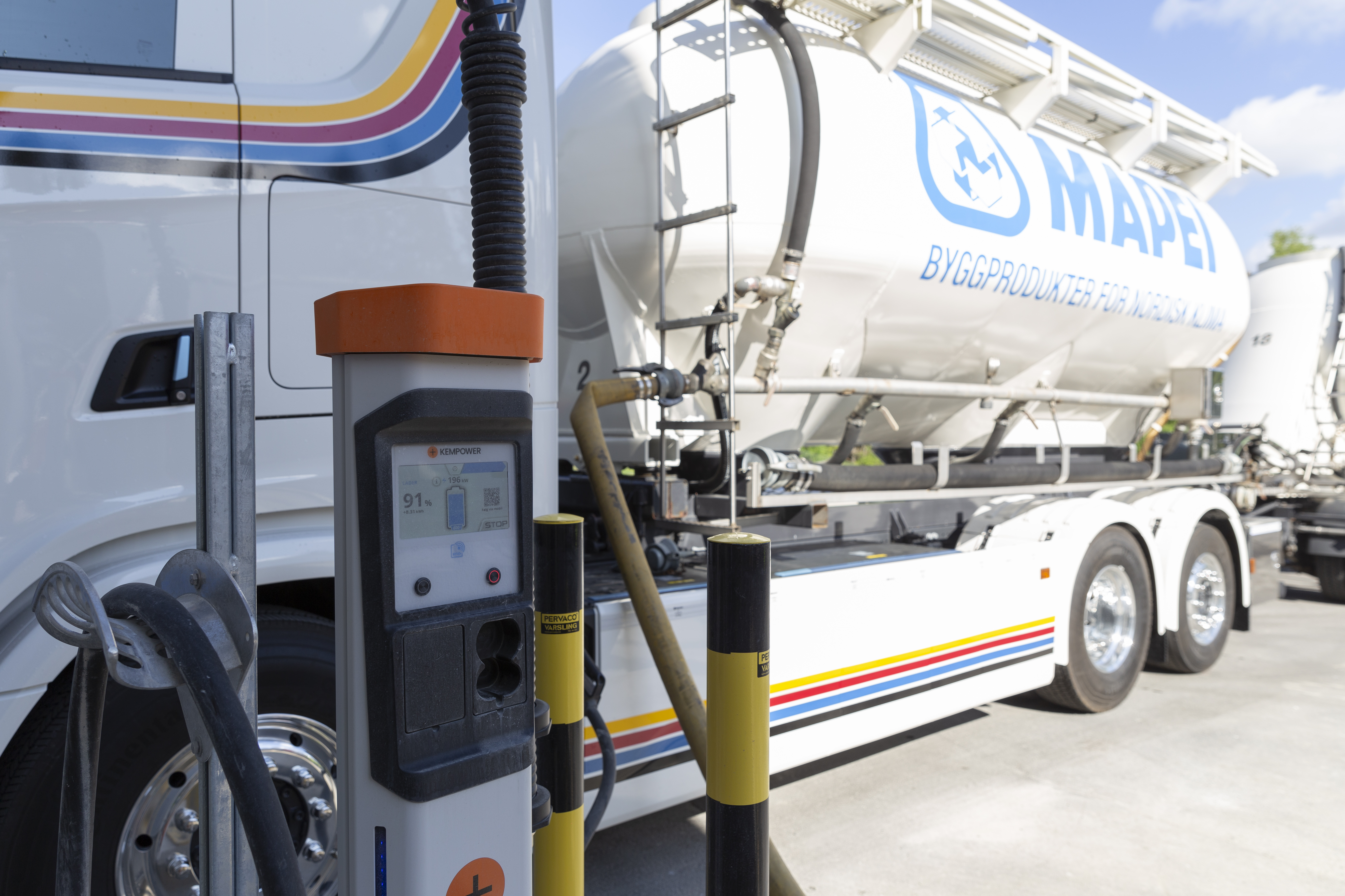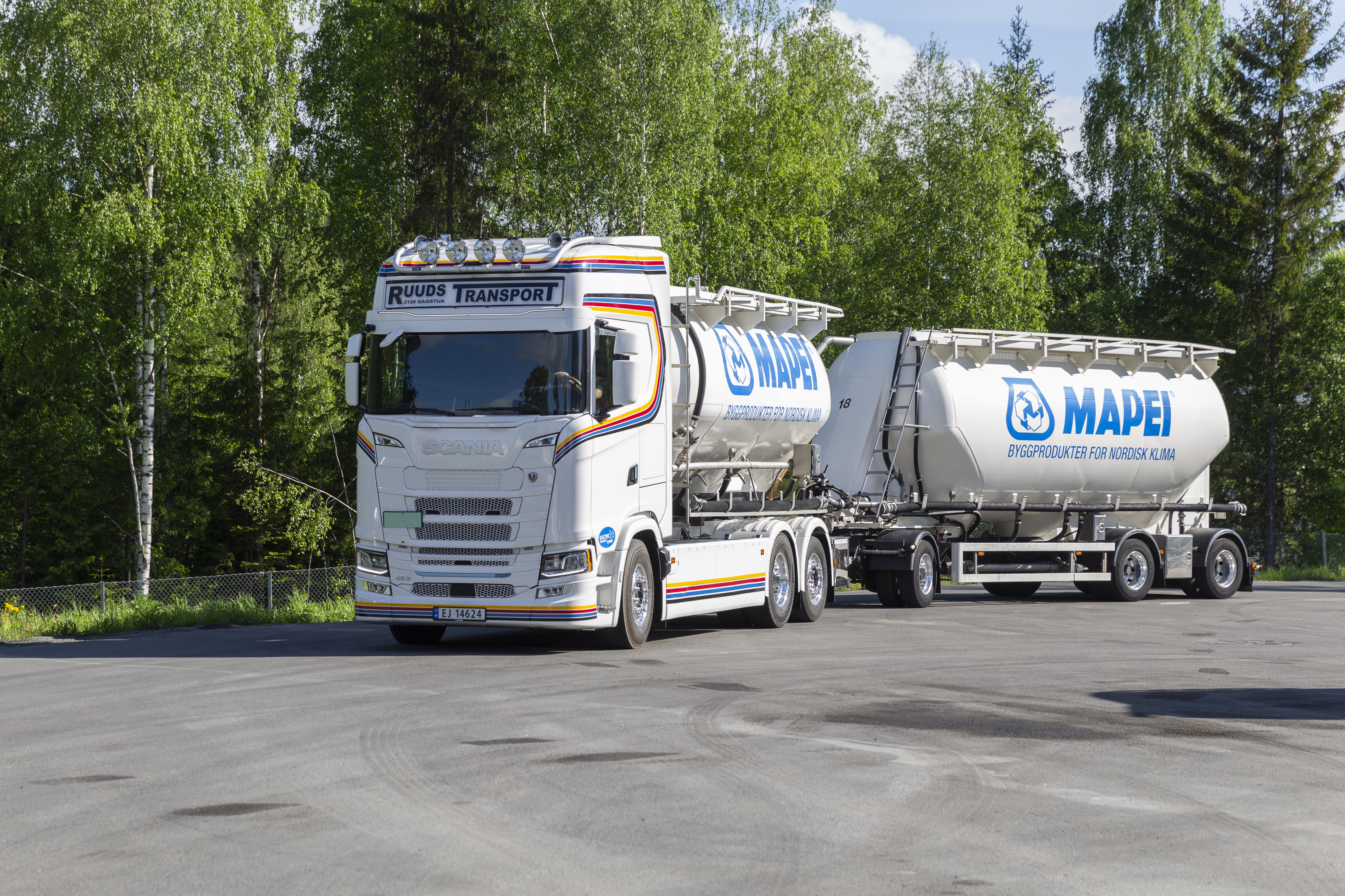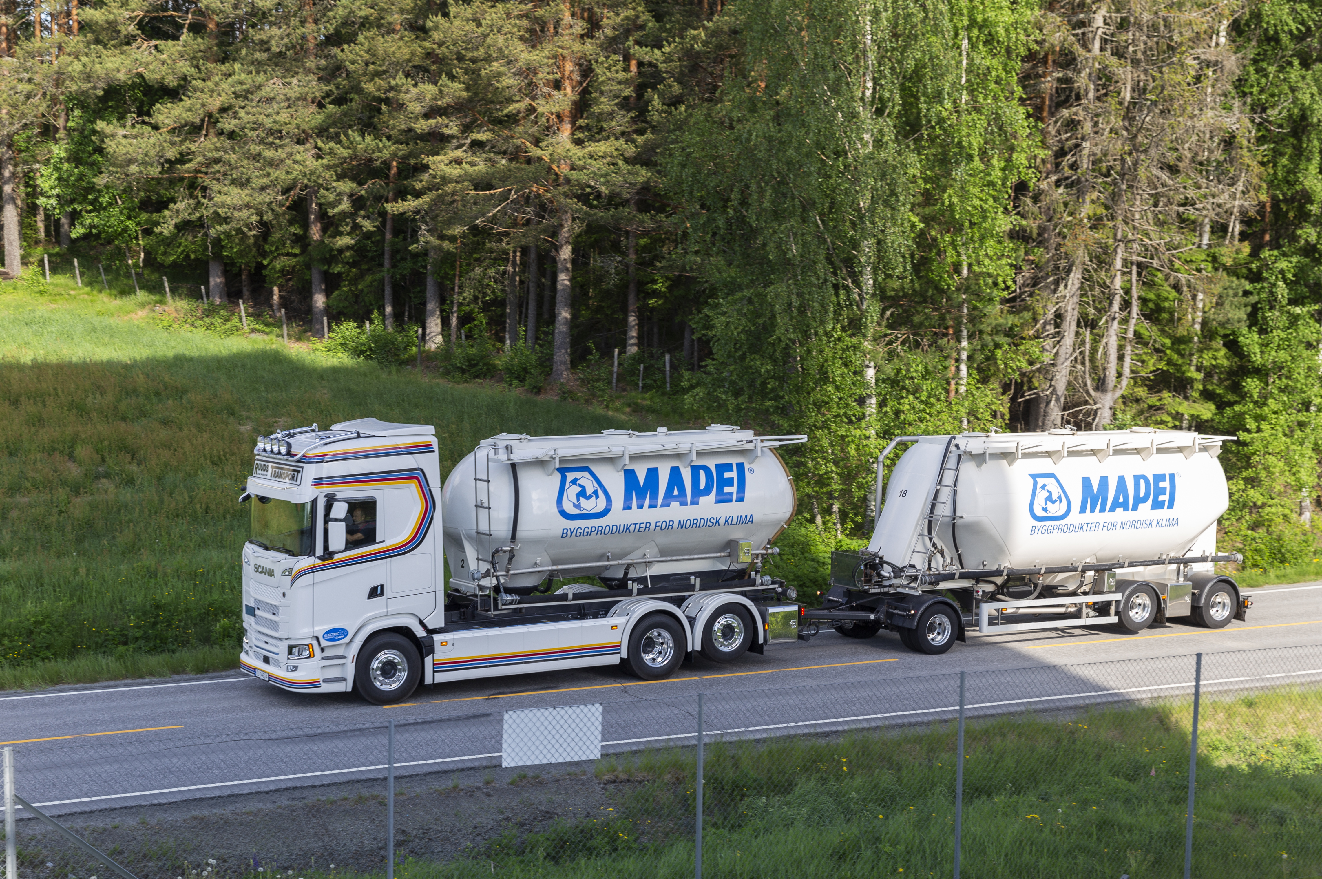 Mapeis transportpartner Ruuds Transport AS har fått sin første elektriske lastebil som vil brukes i Mapeis transportruter. Ruuds Transport AS har også investert stort i ladeinfrastruktur ved sitt eget anlegg og ved Mapeis fabrikk i Nord-Odal. Denne nye Scania-lastebilen er en av de første som er levert av den nye generasjonen med større batterikapasitet enn tidligere.