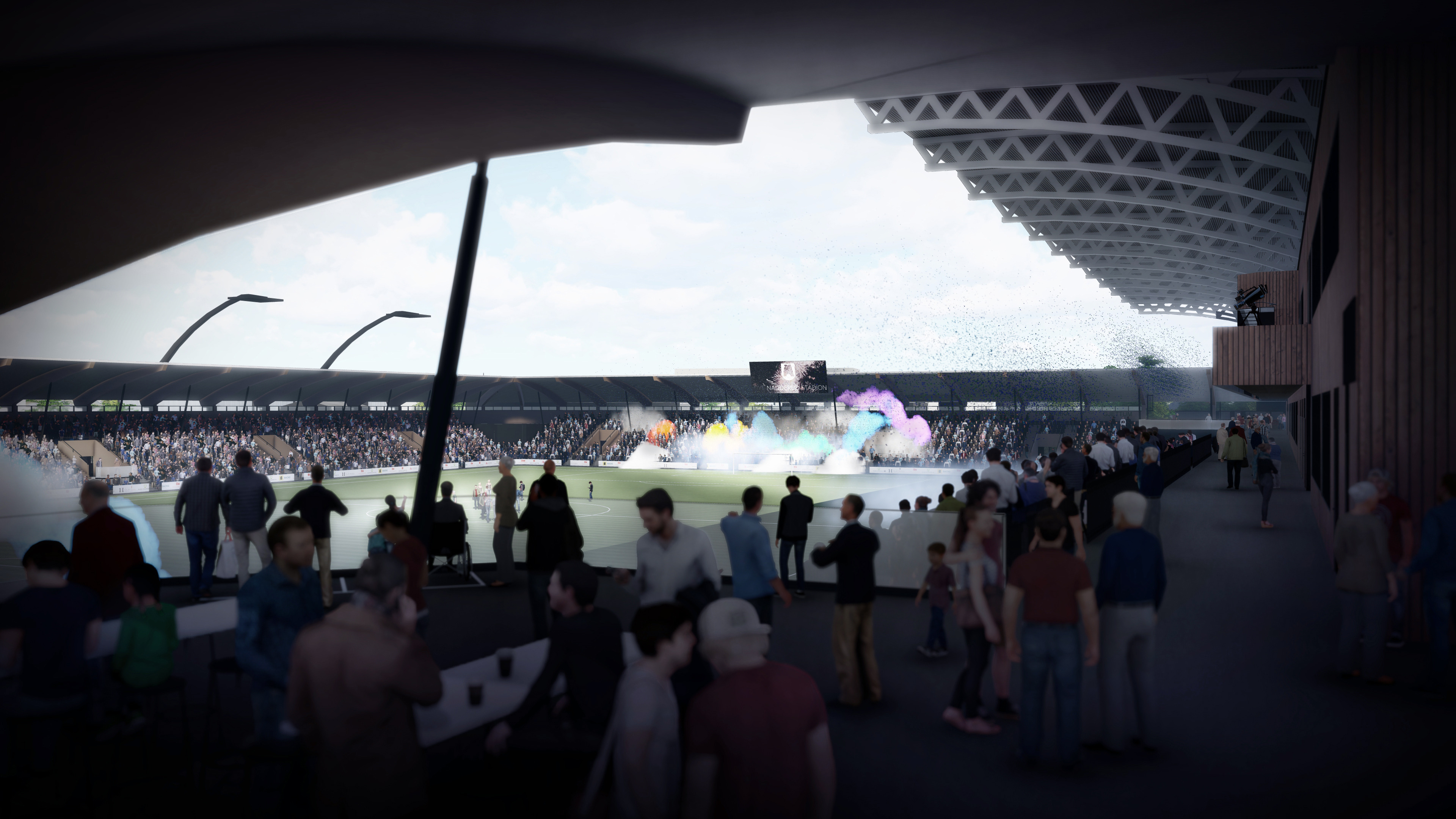 Moelven skal også levere takkonstruksjonen, taket, og sidebygget på utsiden av stadion. Her blir et vrimleområde som skal romme kiosker og toaletter.