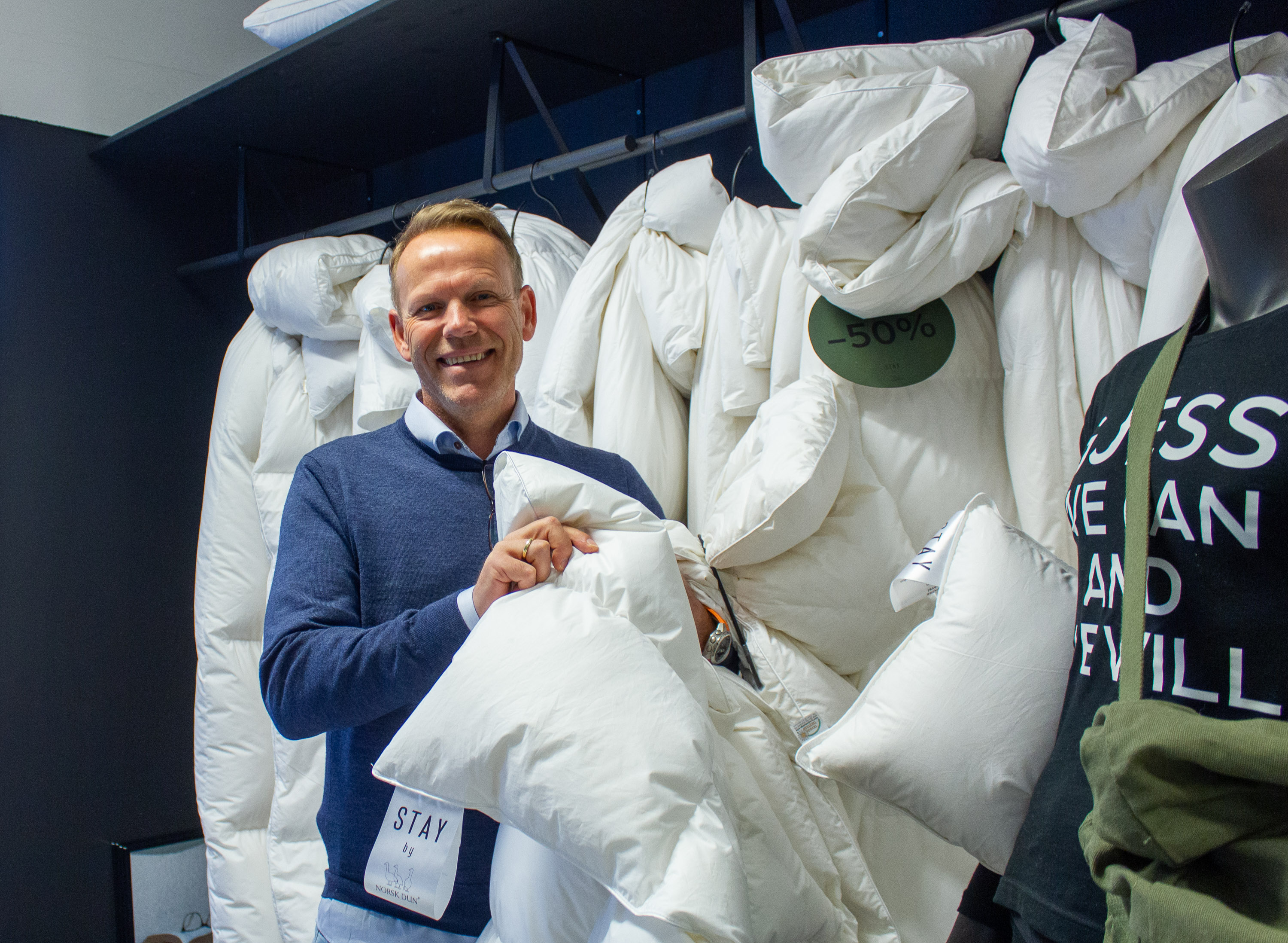 – Det er altså fyllvekten som gjør dynen varm eller sval. Vi er alle forskjellig, og trenger ulike varme dyner til ulik tid på året. Jeg mener alle bør ha tre dyner: en sval, en medium og en vinterdyne. Absolutt ikke helårsdyne, sier Trygve Ullersmo.