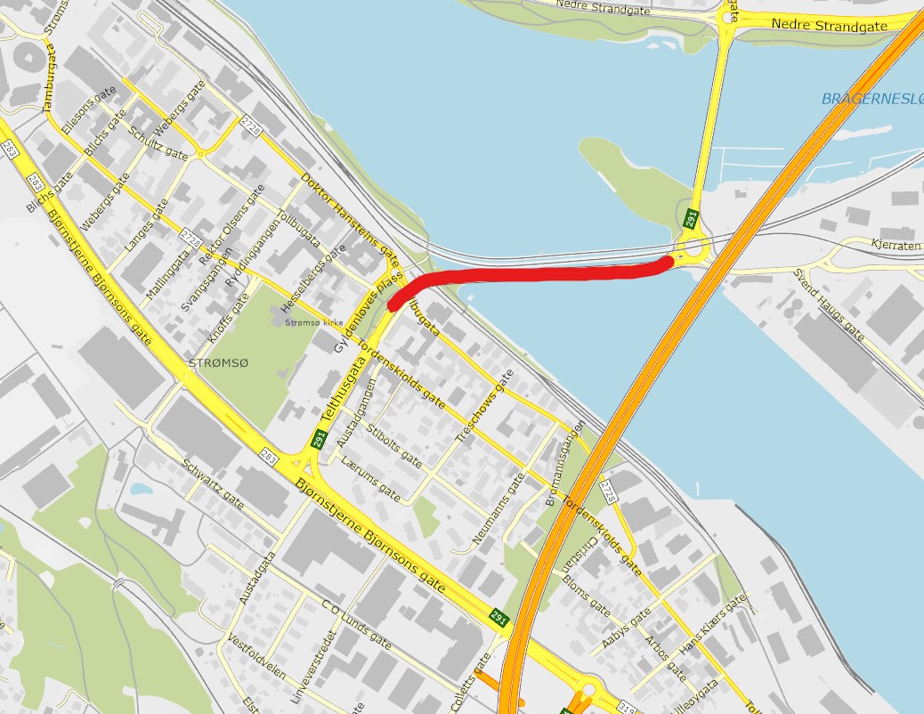 Inspeksjonen av brua på rv. 291, som går fra Strømsø til Holmen i Drammen, finner sted 22.-26. juli. I disse fem dagene må trafikken over brua gå på ett kjørefelt.