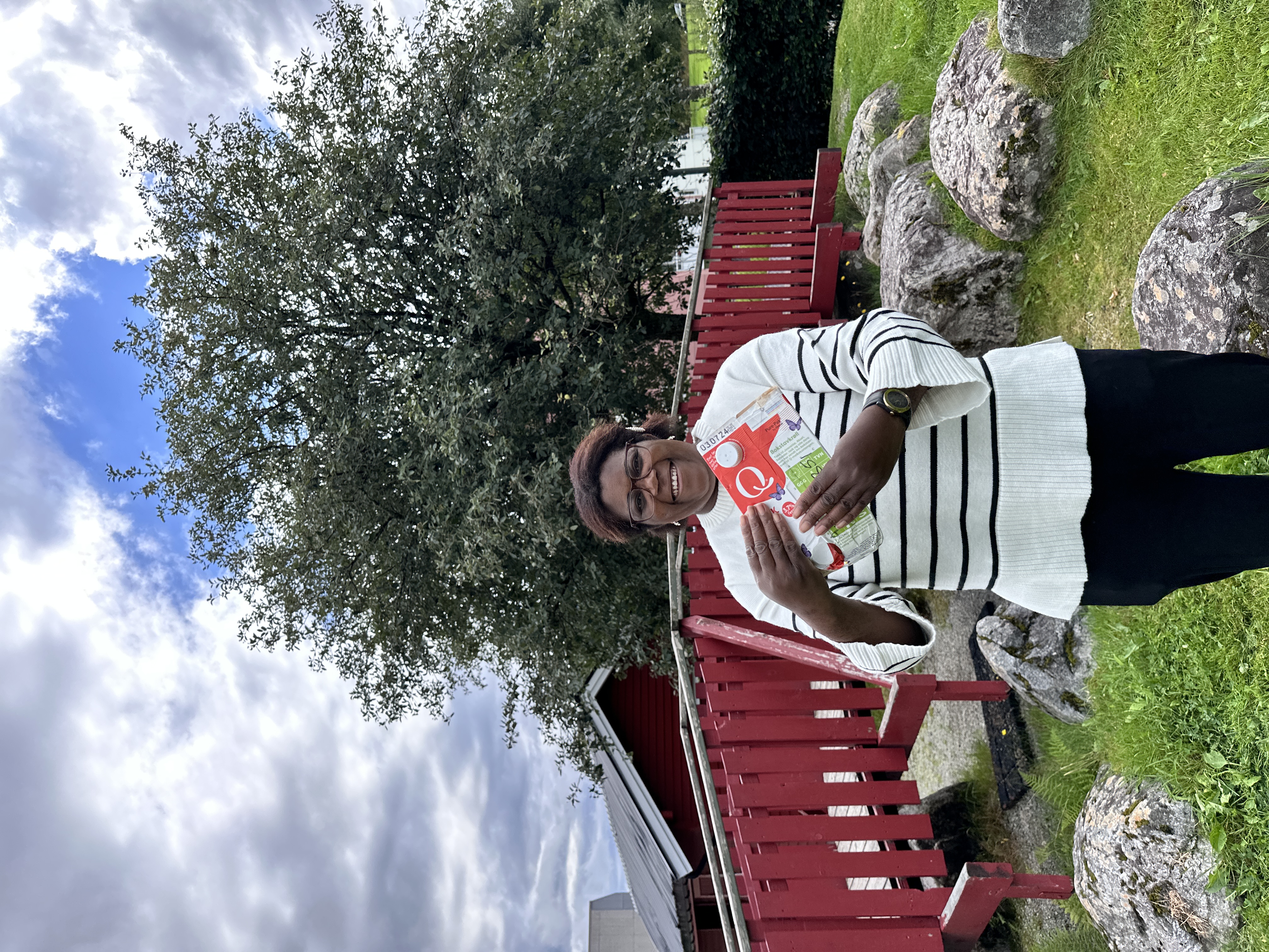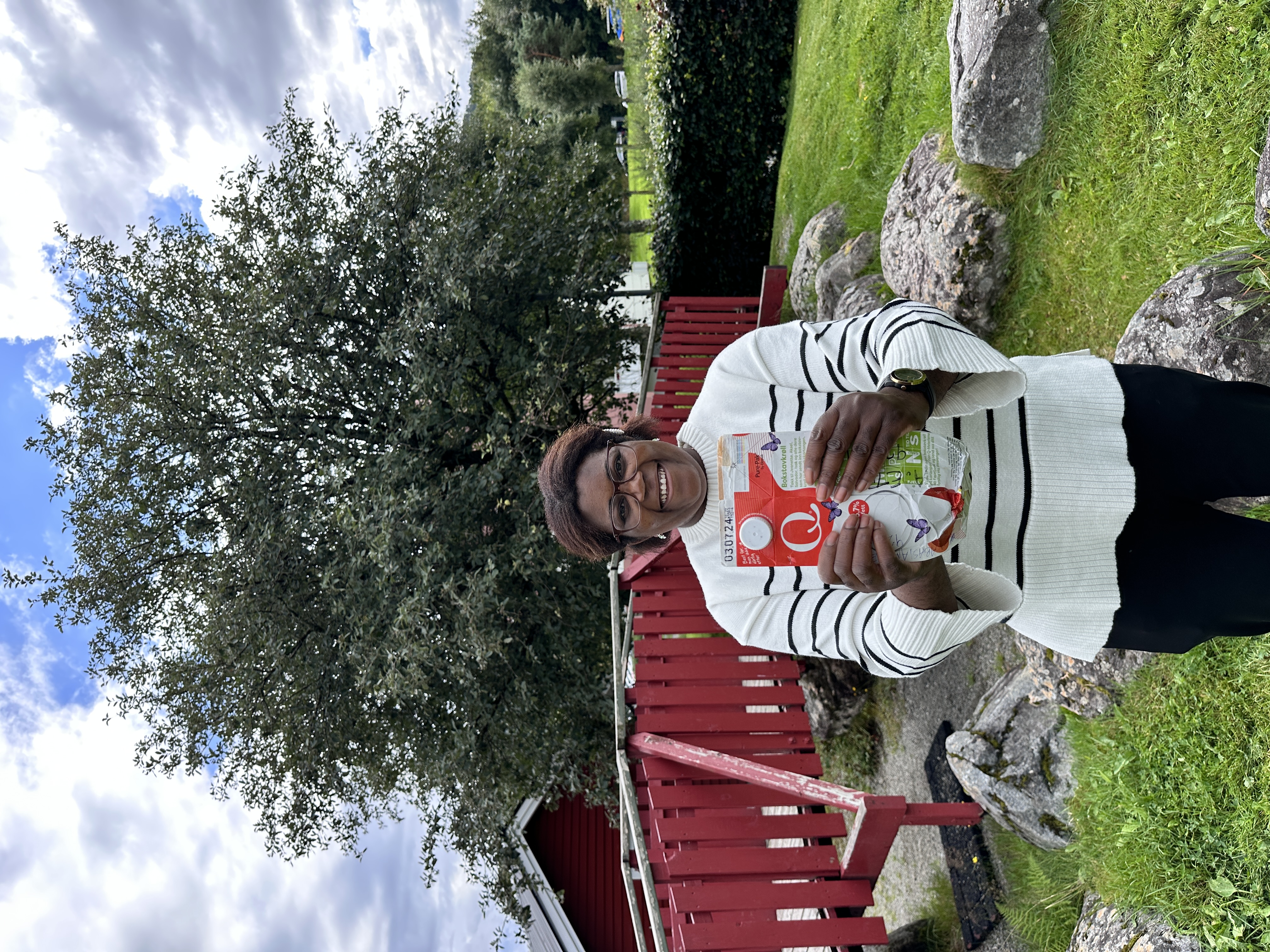 Belønningen av bærekraft: Abasiama ble den heldige vinneren av 10.000 kroner da Q-Meieriene gjennomførte en ekstraordinær trekning av returkartonglotteriet i sommer.